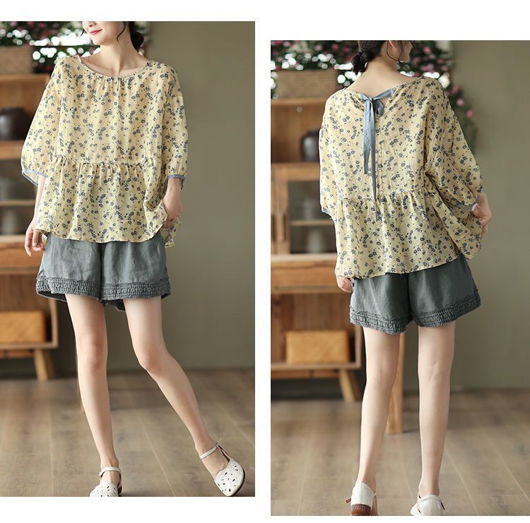 復古鏤空鉤花棉麻短褲【焦黃色】+【灰藍色】各一件(到手兩件,每件均價499元)