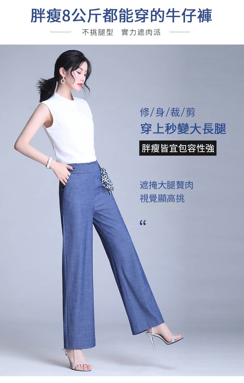 絲巾款垂感闊腿高腰直筒牛仔褲【買一送一】【深藍色】兩條(到手兩條,每條均價549元)