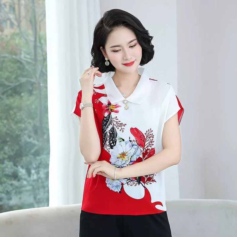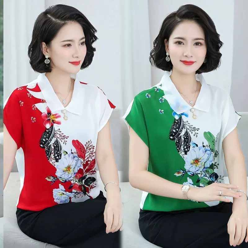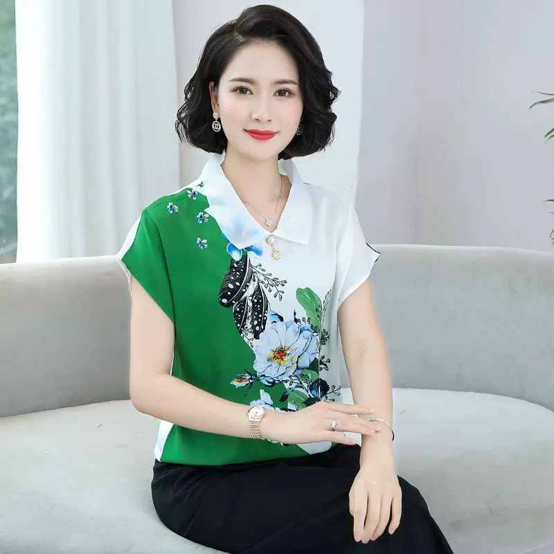 【顯瘦自然!限時特惠買一送一!】氣質媽媽夏季花瓣印花上衣 貨到付款假一賠十7天退換