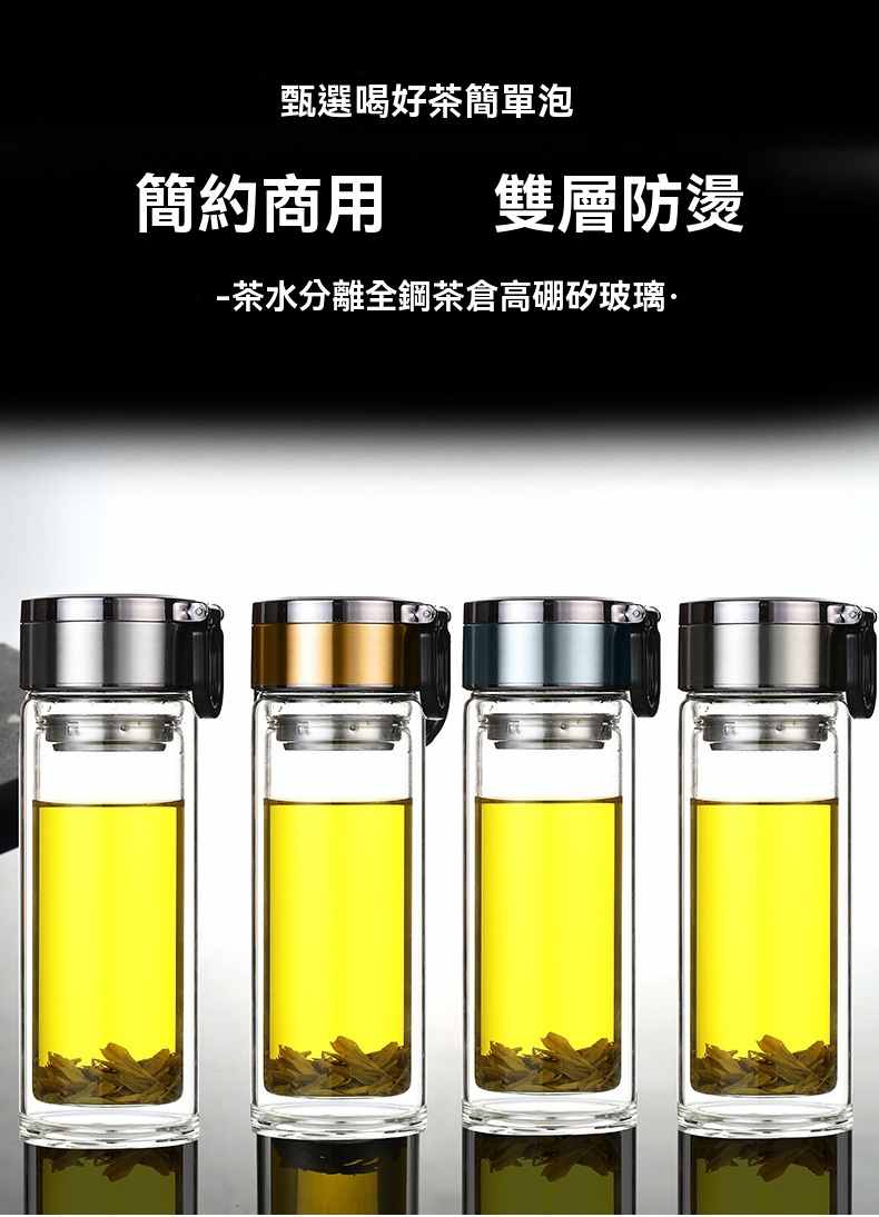 雙層玻璃提環茶水分離杯【買一送一】金色+藍色各一組(到手2組,每組均價399元!)