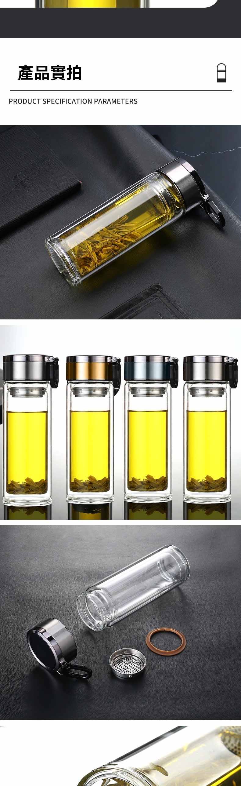 雙層玻璃提環茶水分離杯【買一送一】金色+銀色各一組(到手2組,每組均價399元!)