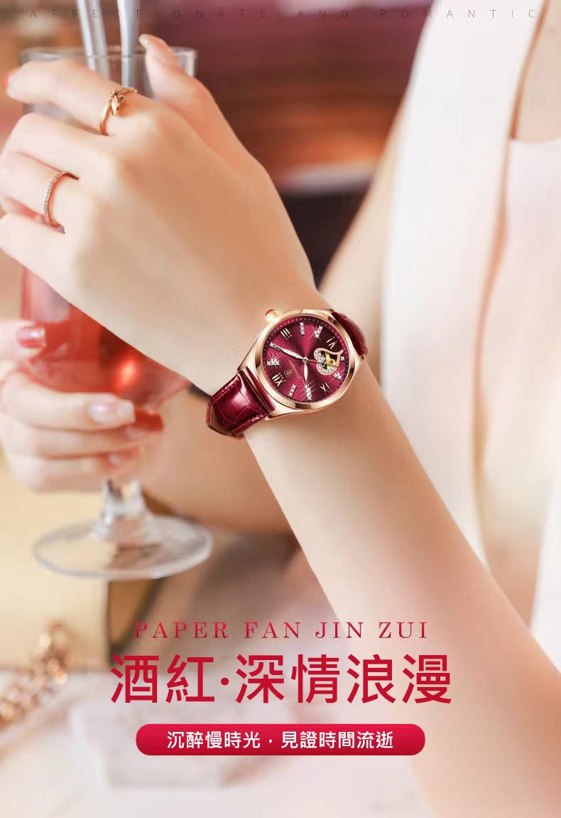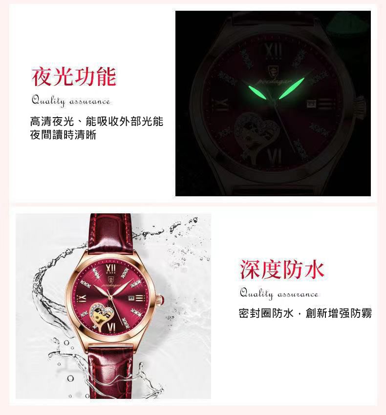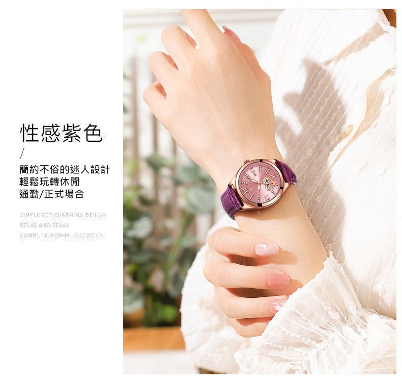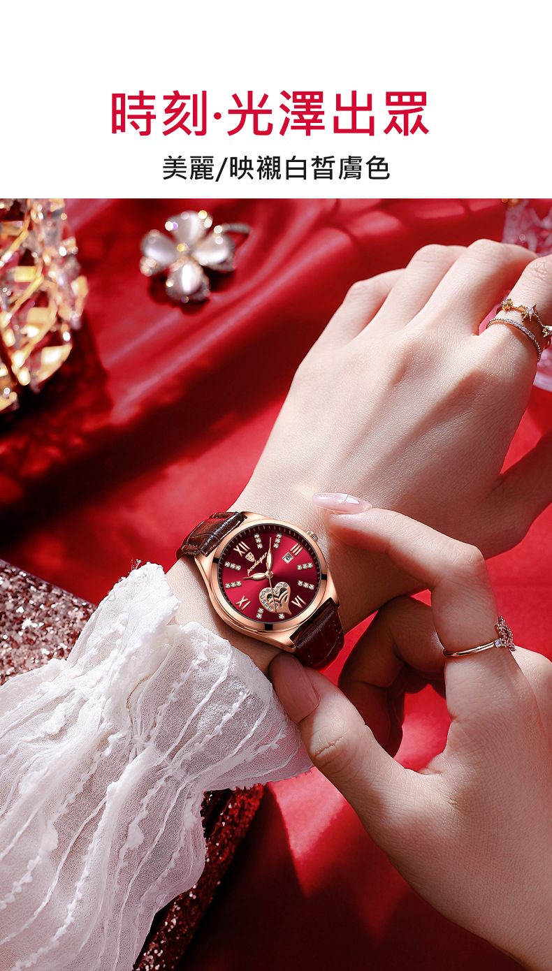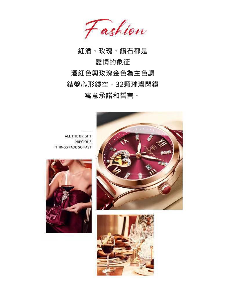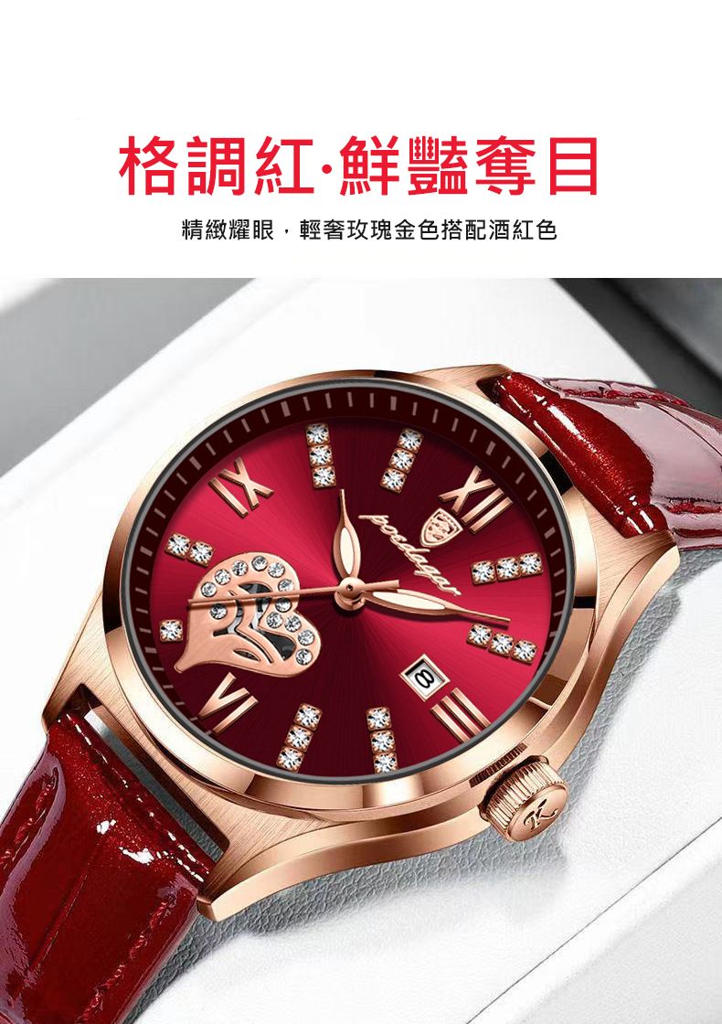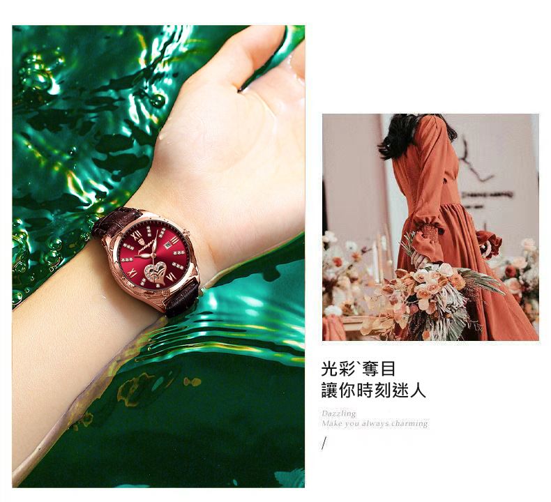 新款防水夜光日曆韓版女錶【皮帶玫金酒紅色】+【皮帶玫金白面】各一組(優惠400元)