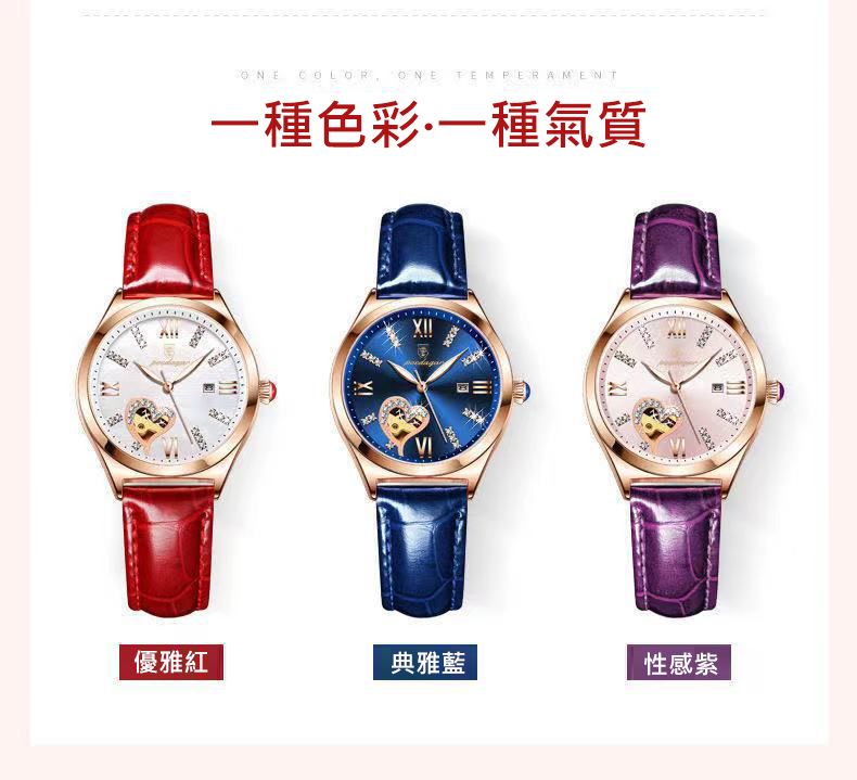 新款防水夜光日曆韓版女錶【皮帶玫金酒紅色】+【皮帶玫金藍面】各一組(優惠400元)