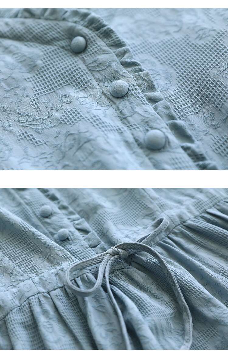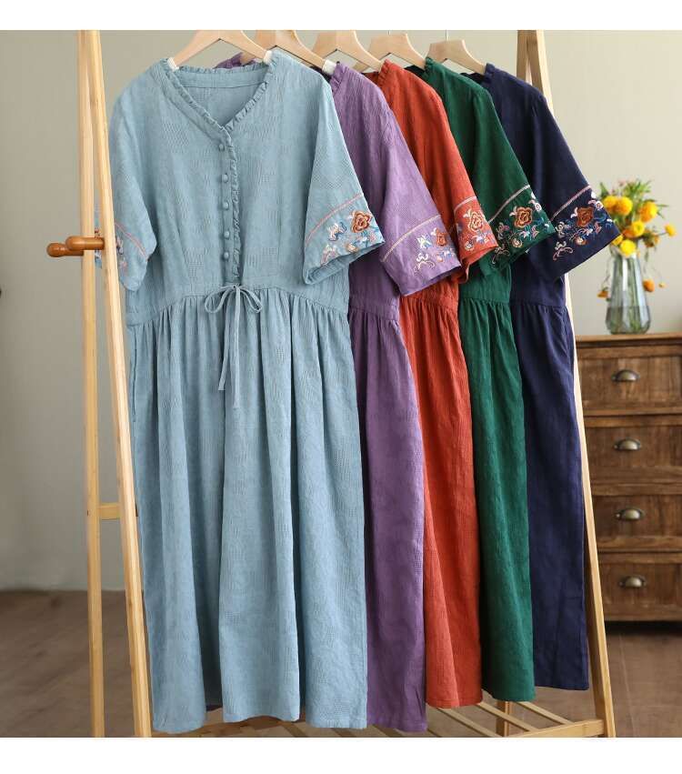 收腰抽繩顯瘦棉麻中長款連衣裙【加400元得2件!】【藍色】+【綠色】各一件