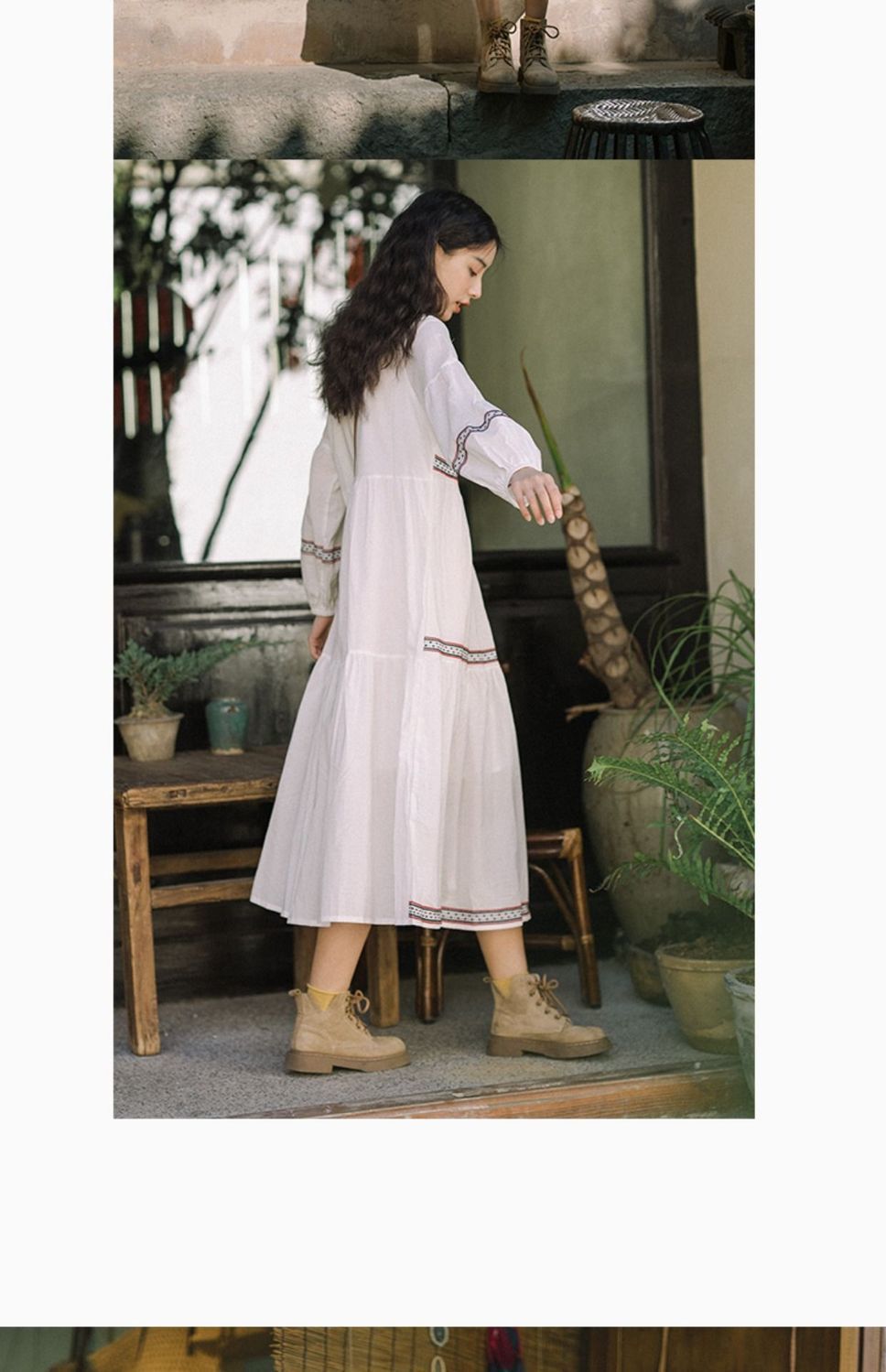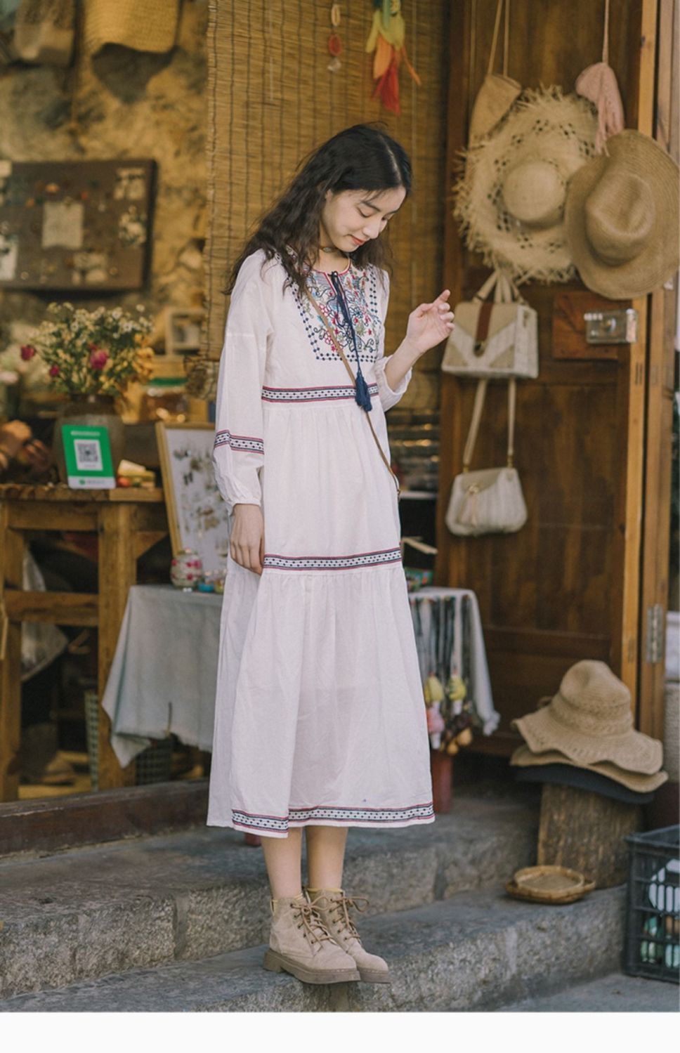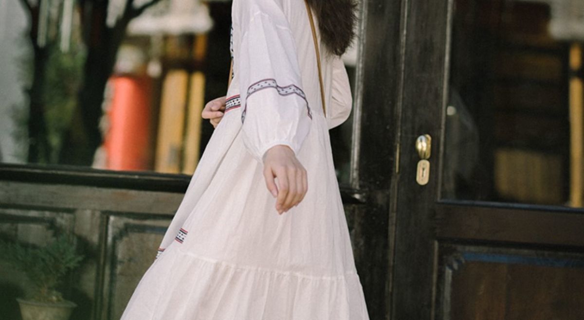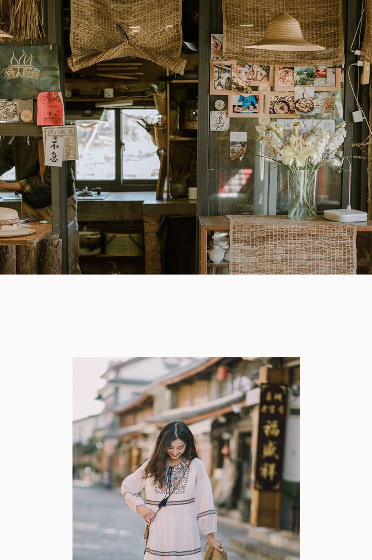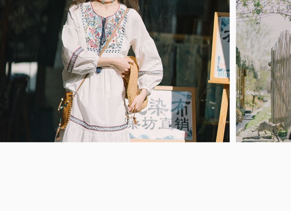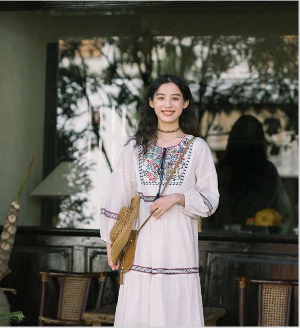 【全台免運!秋季旅遊穿搭必備!】民族風別緻刺繡中長款連衣裙