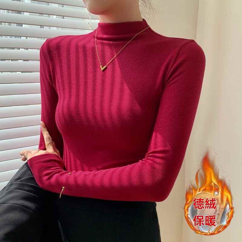 顯瘦百搭保暖純色德絨長袖上衣【買一送二】酒紅色+咖啡色+粉色各一件(到手三件,每件333元!)