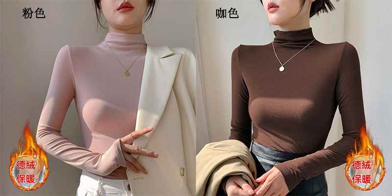 顯瘦百搭保暖純色德絨長袖上衣【買一送二】白色+咖啡色+粉色各一件(到手三件,每件333元!)