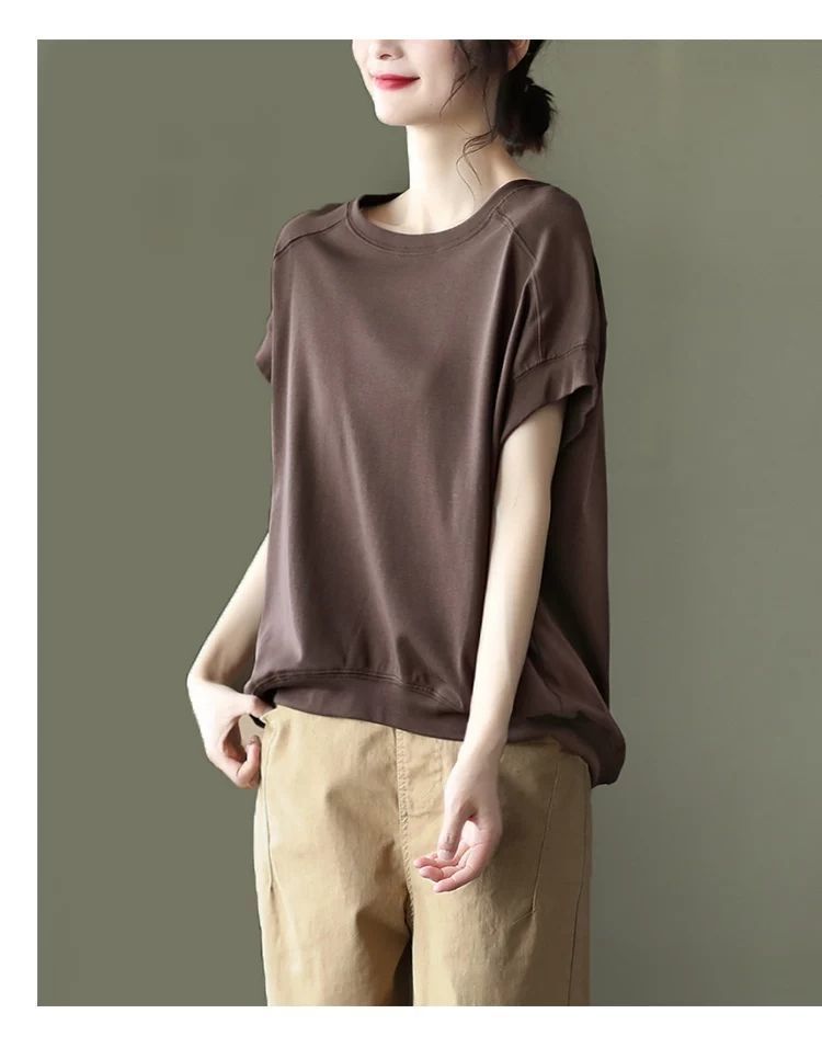 簡單大方圓領透氣純色T恤【買一送二】綠色+咖色+黑色各一件(到手三件,均價333元!)