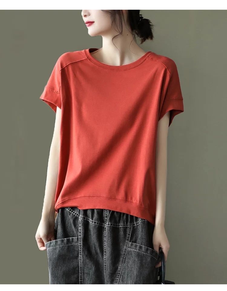 簡單大方圓領透氣純色T恤【加200秒殺4件!】紅色+綠色+咖色+黑色各一件(到手4件,均價299元!)
