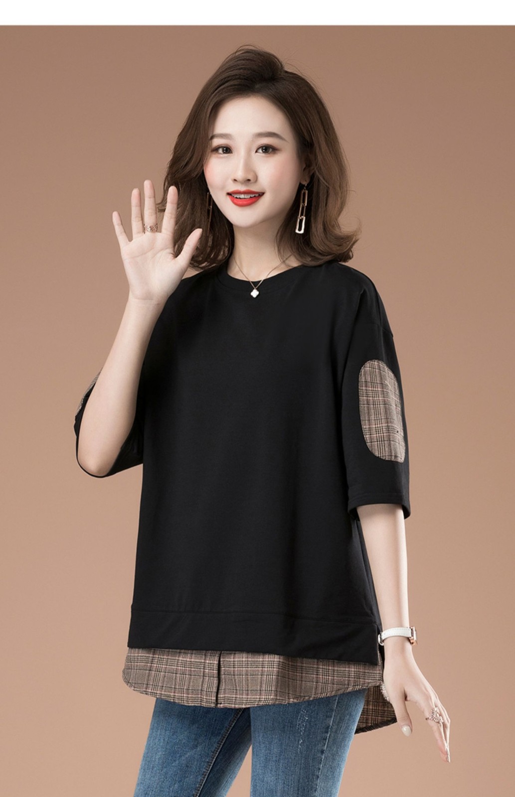 休閒寬鬆設計感假兩件T恤【買一送一】【黑色】+【咖色】各一件(到手兩件,每件均價549元)
