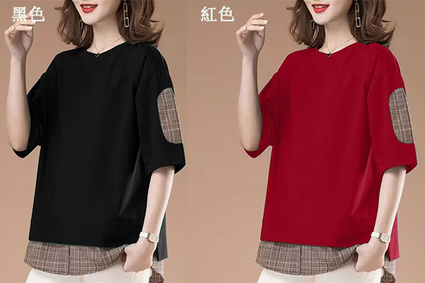 休閒寬鬆設計感假兩件T恤【買一送一】【黑色】+【紅色】各一件(到手兩件,每件均價549元)