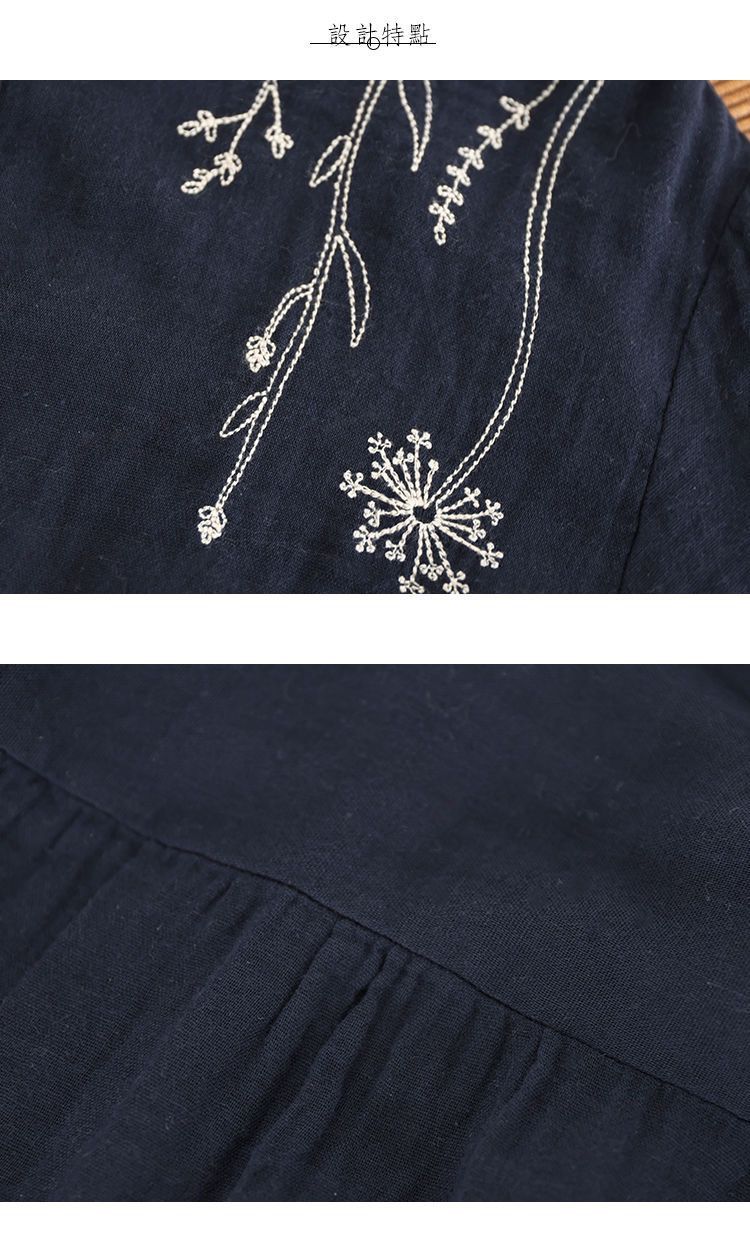 純棉簡約花卉刺繡長袖襯衣【買一送一】【藍色】兩件(到手兩件,每件均價549元)