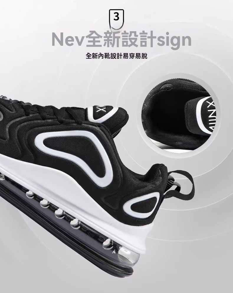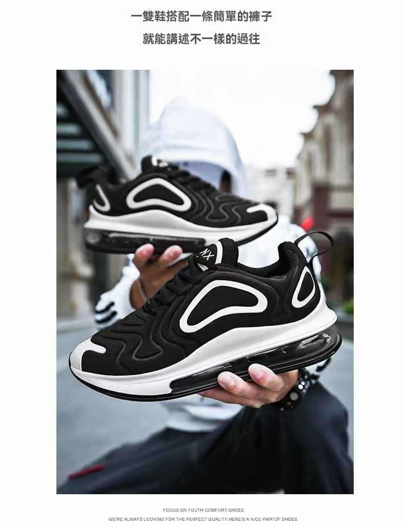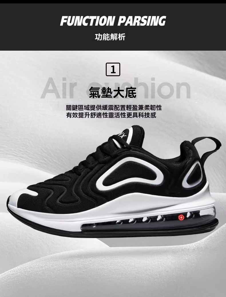 氣墊大底厚底增高男士跑鞋【黑色】+【黑白色】各一雙(優惠400,到手2雙,每雙均價798元!)