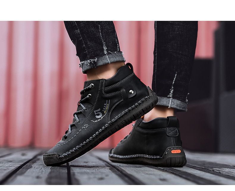 【大老闆專享】復古縫線高幫耐穿潮流工裝皮鞋【棕色】+【黑色】各一雙(優惠400)