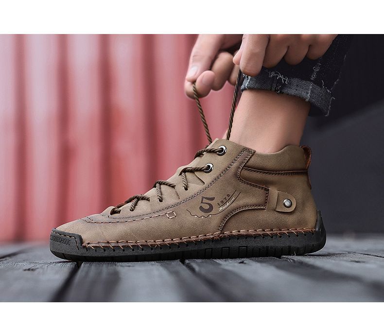 【大老闆專享】復古縫線高幫耐穿潮流工裝皮鞋【卡其色】一雙
