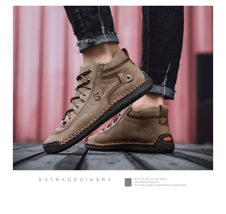 【大老闆專享】復古縫線高幫耐穿潮流工裝皮鞋【卡其色】+【棕色】各一雙(優惠400)