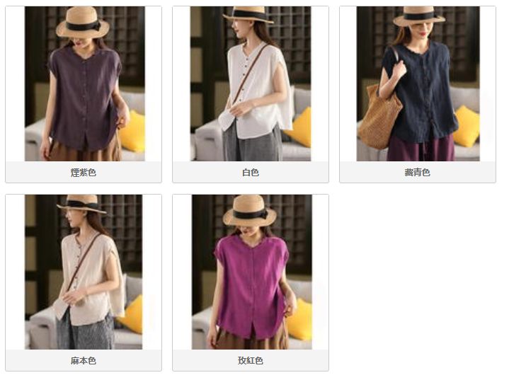 涼快寬鬆花邊領紐扣棉麻上衣【煙紫色】+【藏青色】各一件(到手兩件,每件均價549元)