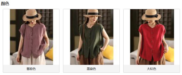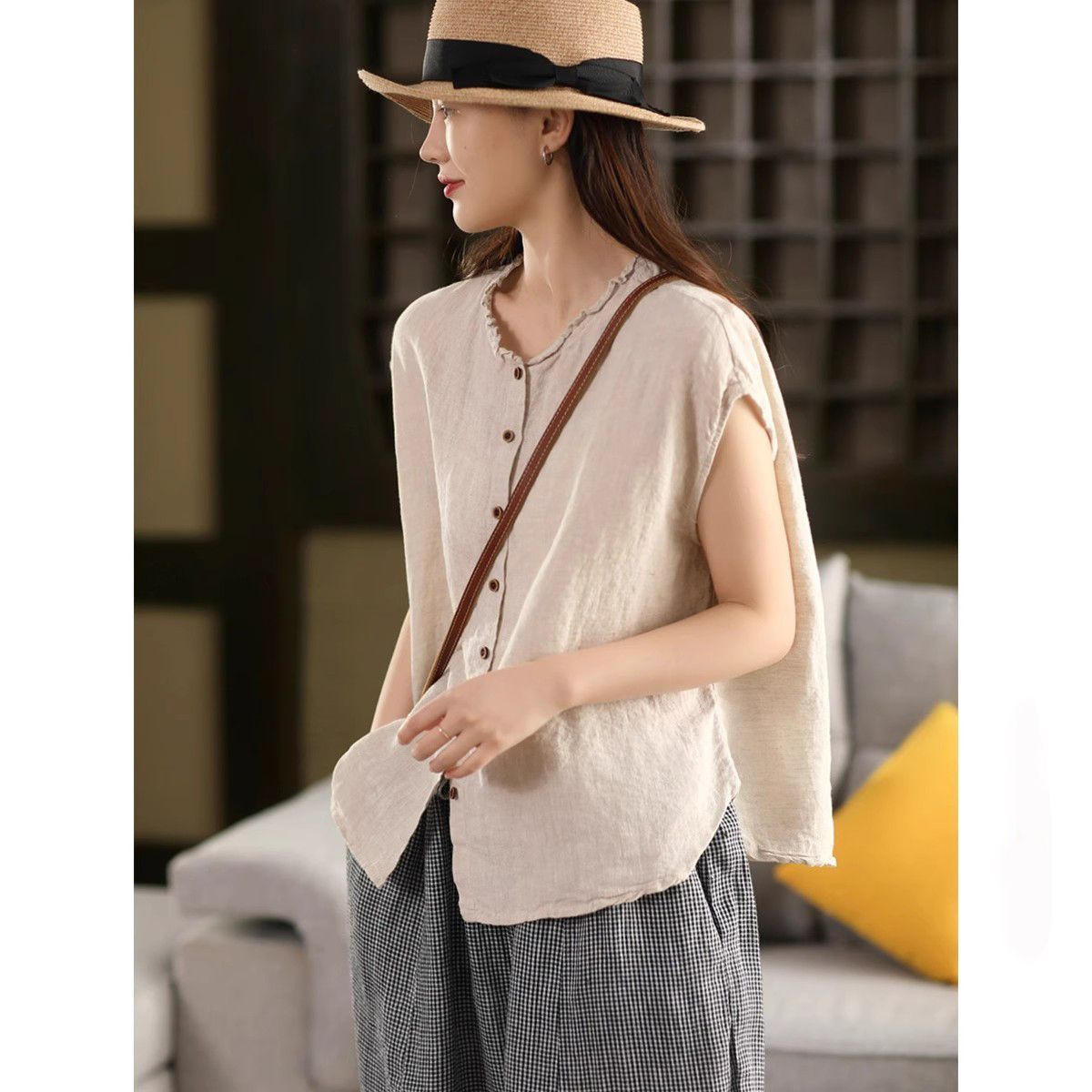 涼快寬鬆花邊領紐扣棉麻上衣【麻本色】+【玫紅色】各一件(到手兩件,每件均價549元)