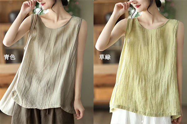 棉麻氣質減齡內搭外穿吊帶背心【買一送二】草綠+粉色+青色各一件(到手3件!每件均價333元!)