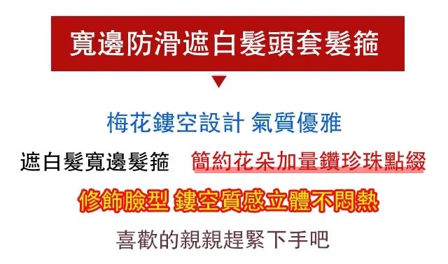 【優雅時尚!限時買二送二!】修飾臉型遮白髮梅花鏤空髮帶