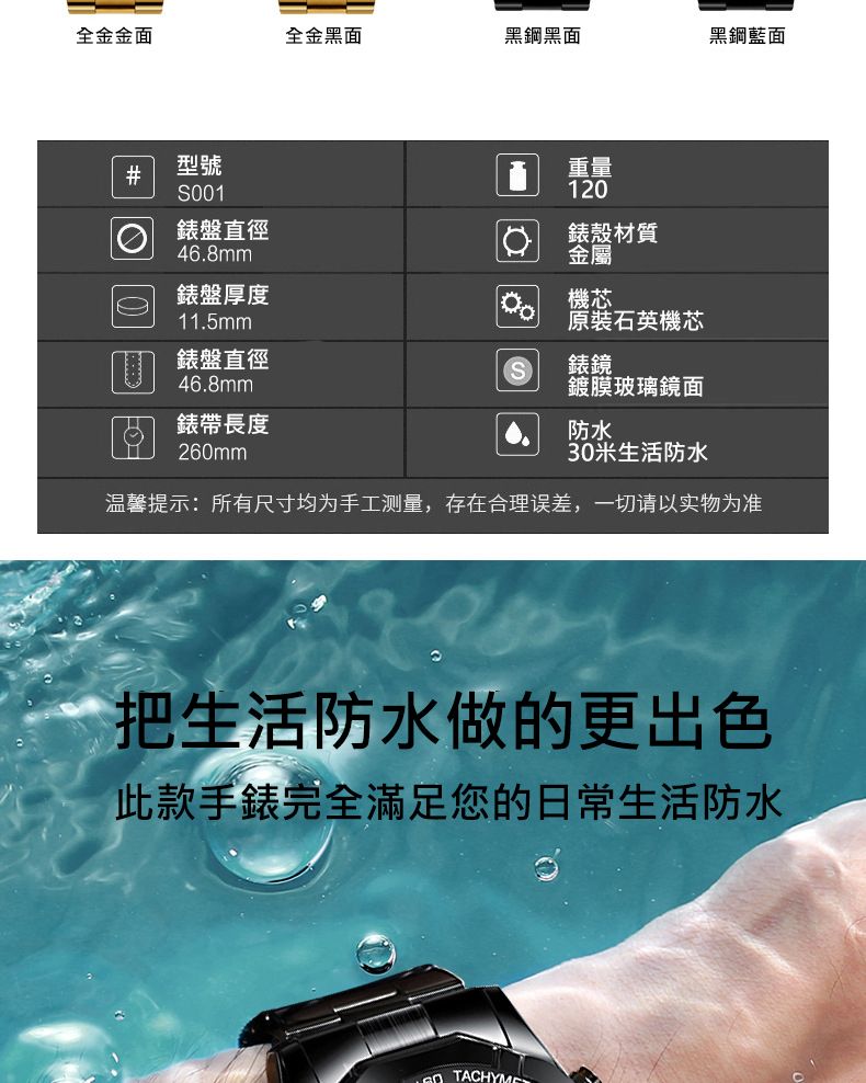 【美學新風尚】超大新日曆大錶盤男士手錶【全金金面】一塊