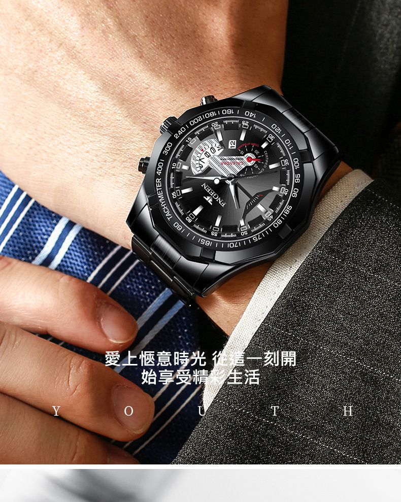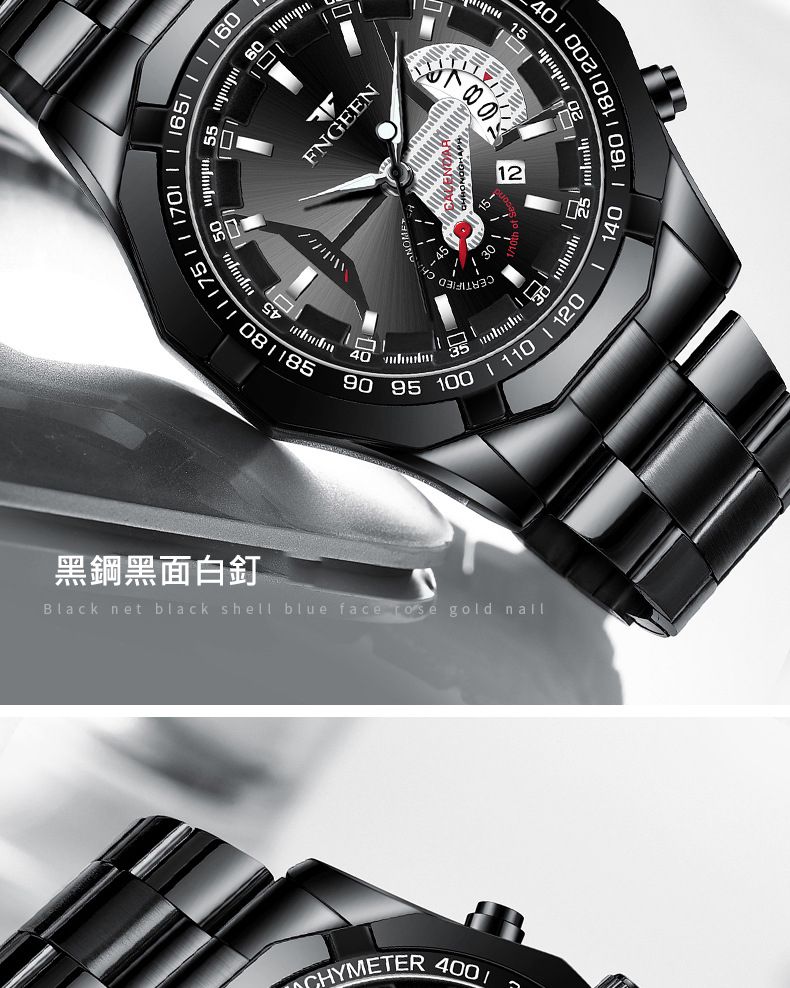 【美學新風尚】超大新日曆大錶盤男士手錶【黑鋼黑面】一塊