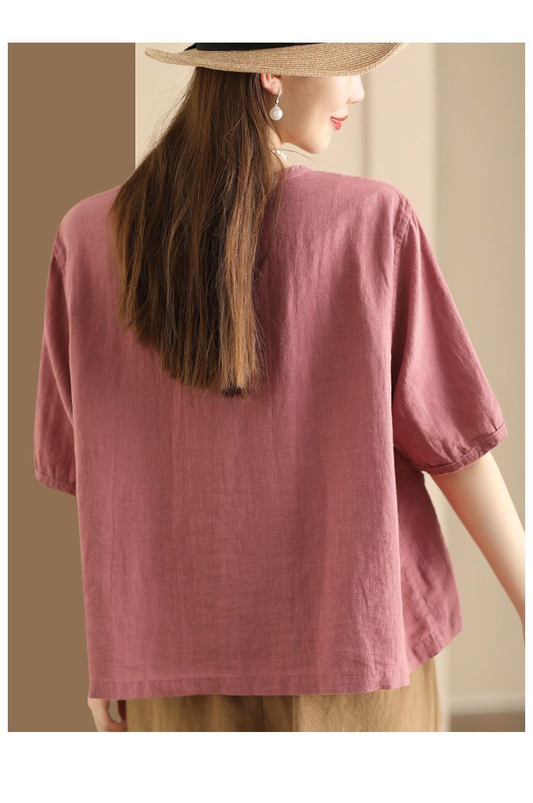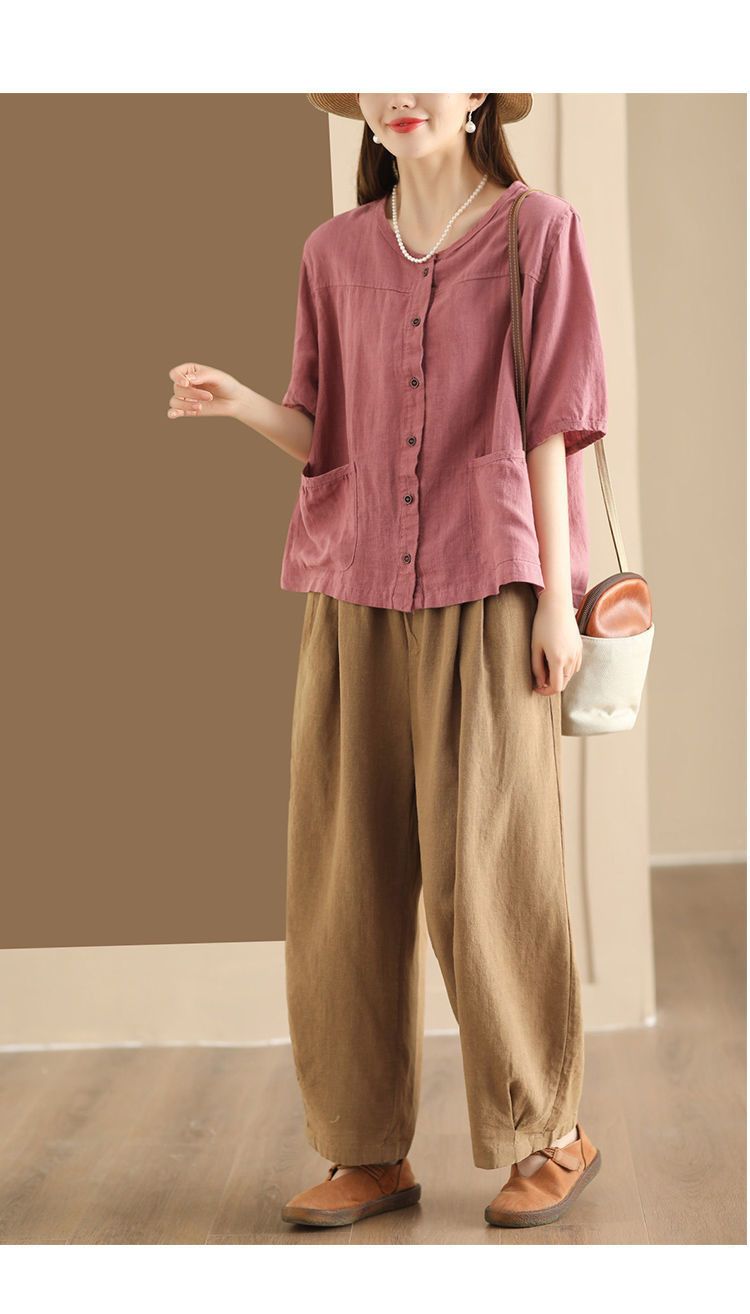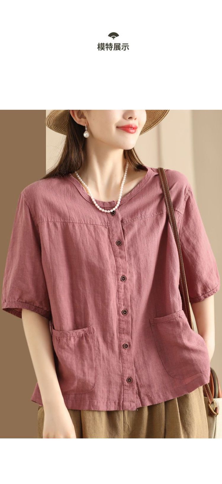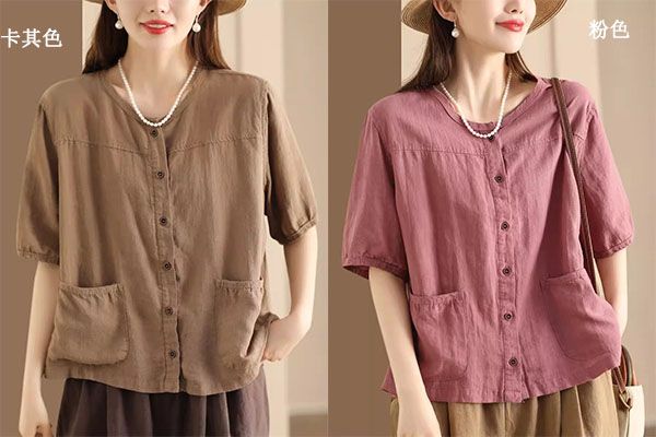 口袋設計復古氣質棉麻襯衫【粉色】+【咖色】各一件(到手兩件,每件均價499元)