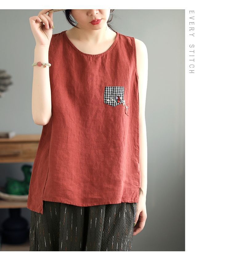 民族風拼接棉麻百搭背心【買一送一】綠色+橘紅各一件(到手2件!每件均價499元!)