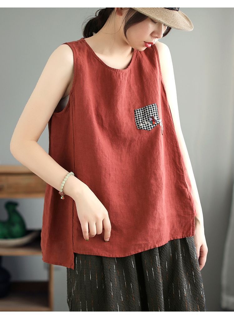 民族風拼接棉麻百搭背心【買一送一】咖色+橘紅各一件(到手2件!每件均價499元!)