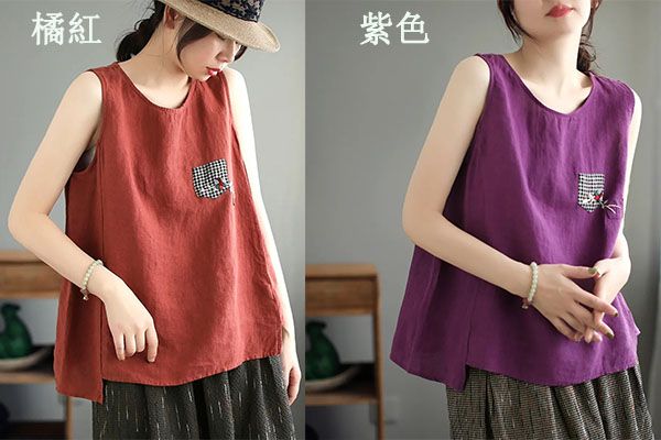 民族風拼接棉麻百搭背心【買一送一】紫色+黑色各一件(到手2件!每件均價499元!)