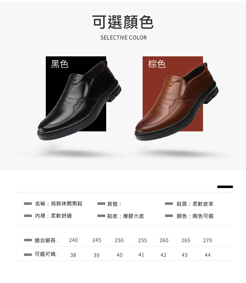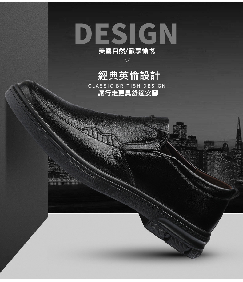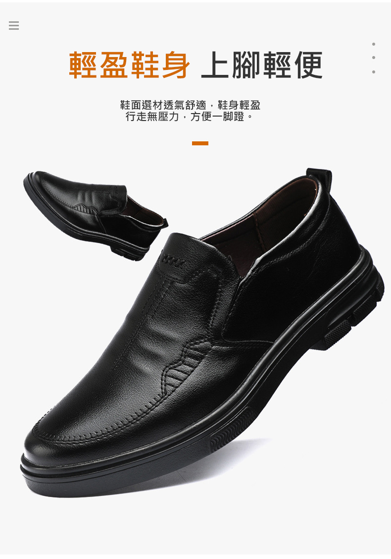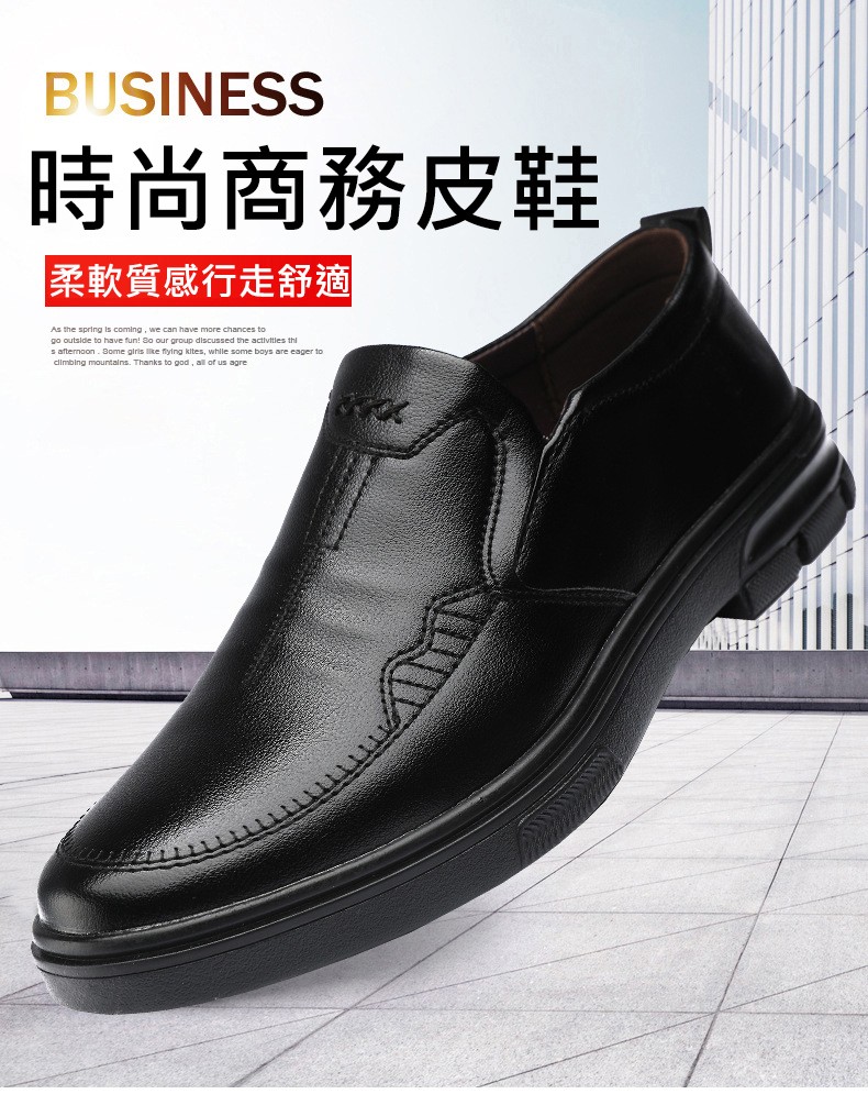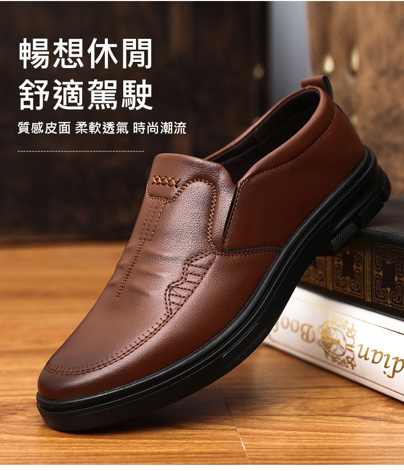 牛筋底舒適透氣套腳男士皮鞋【買一送一】【黑色】+【咖色】各一雙 (到手兩雙,每雙均價649元!)
