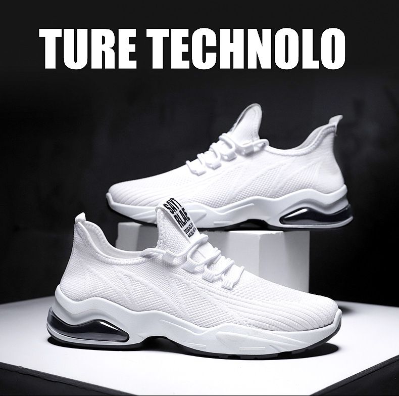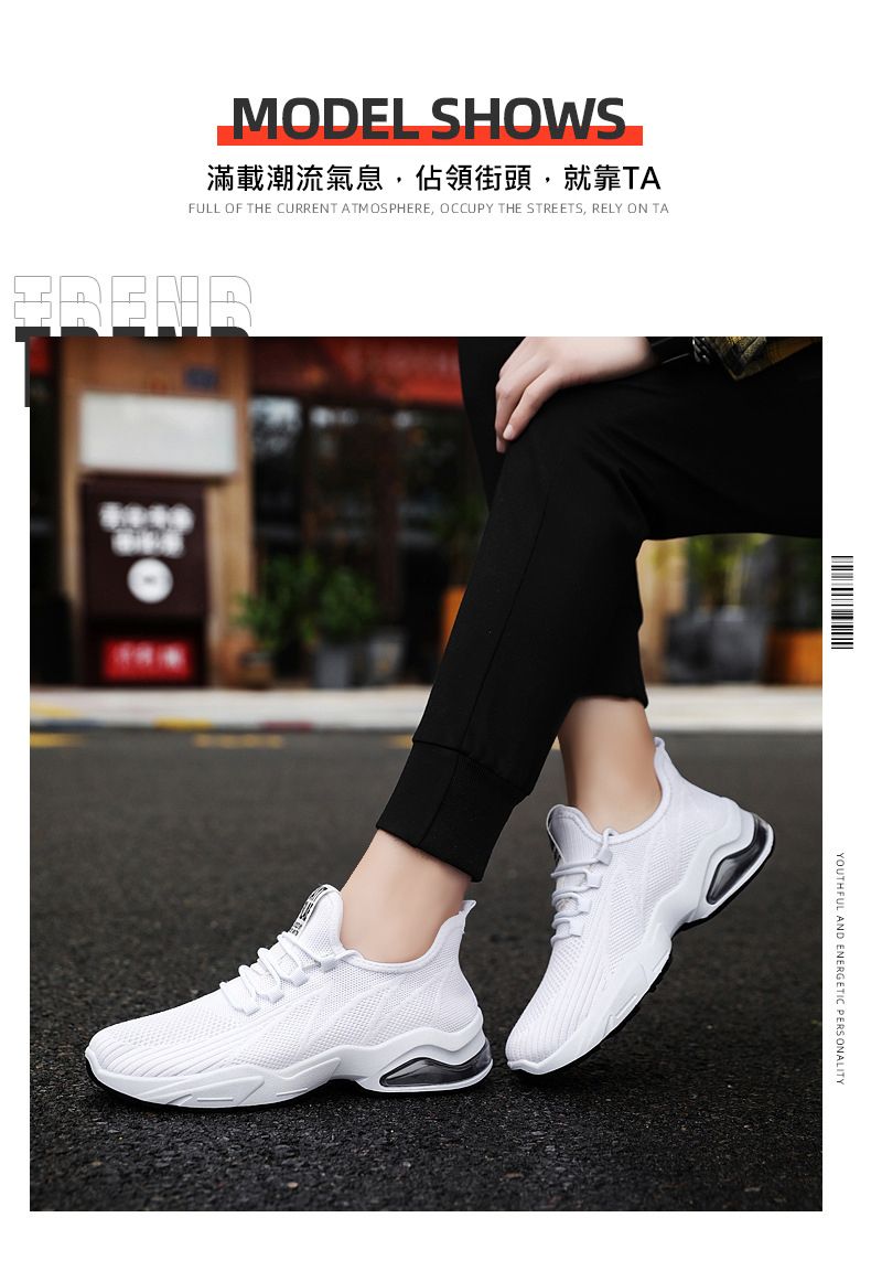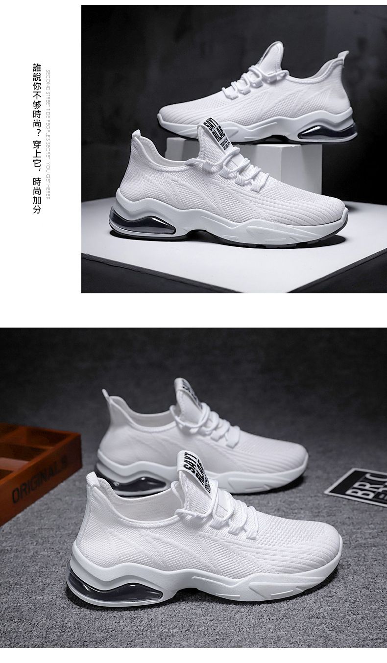 【品位之選!】男士飛織氣墊跑鞋【白色】一雙