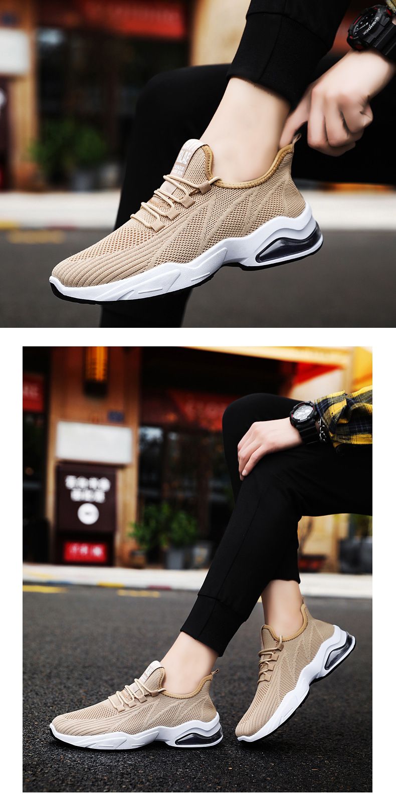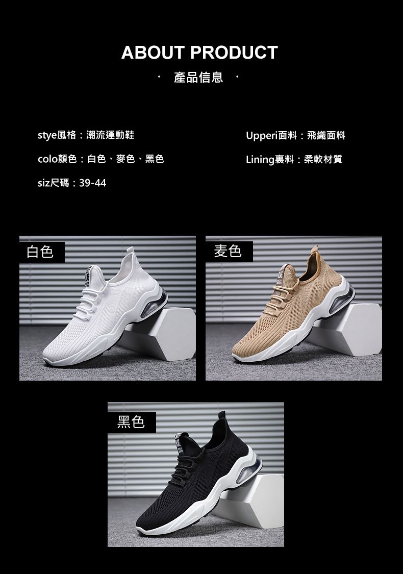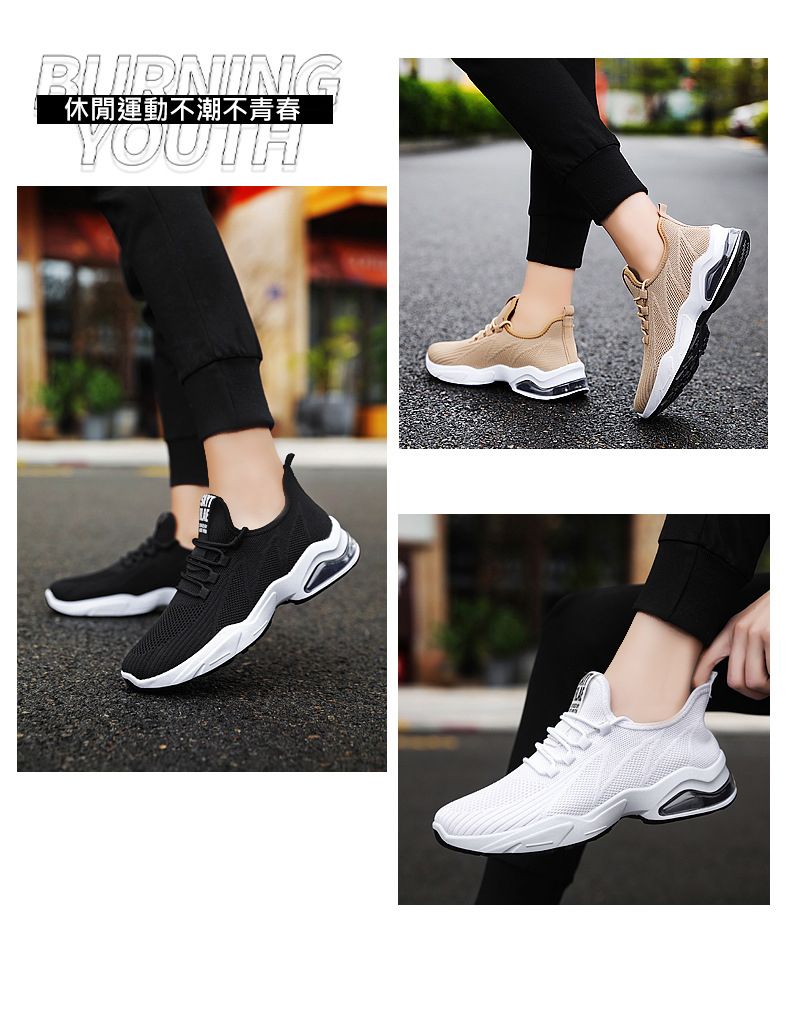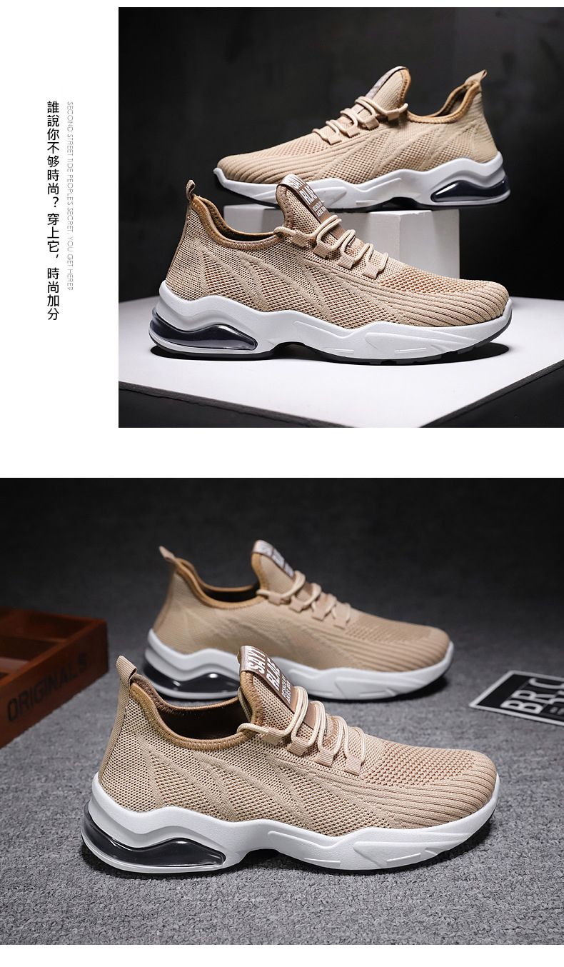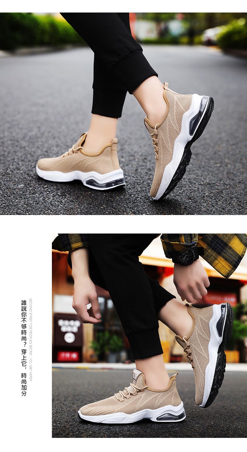 【品位之選!】男士飛織氣墊跑鞋【卡其色】+【白色】各一雙(優惠400)