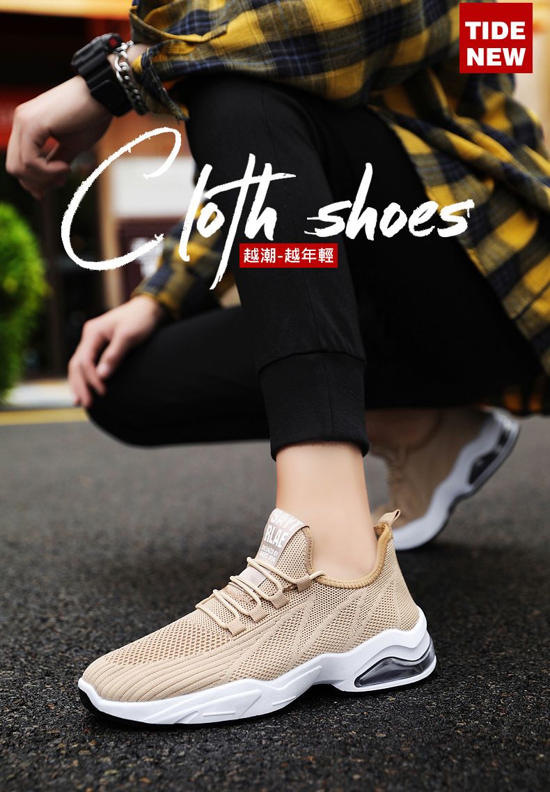 【品位之選!】男士飛織氣墊跑鞋【卡其色】一雙