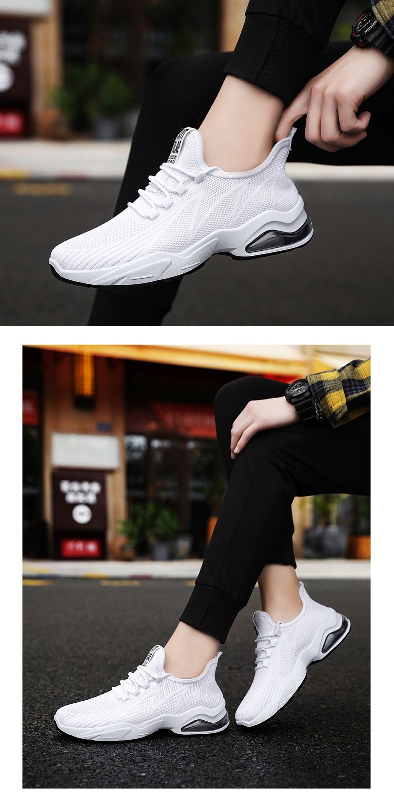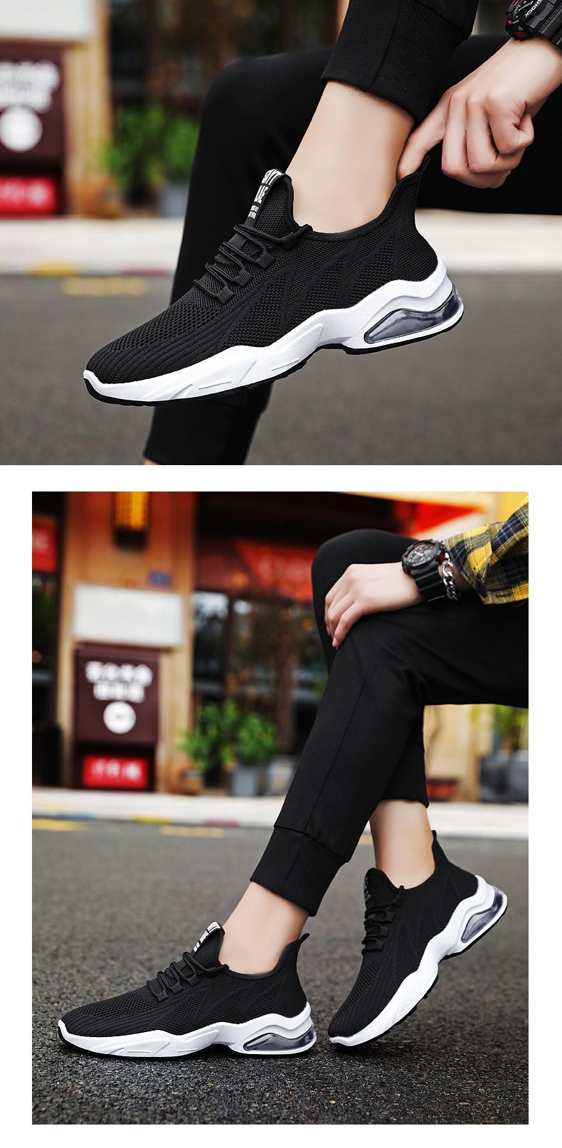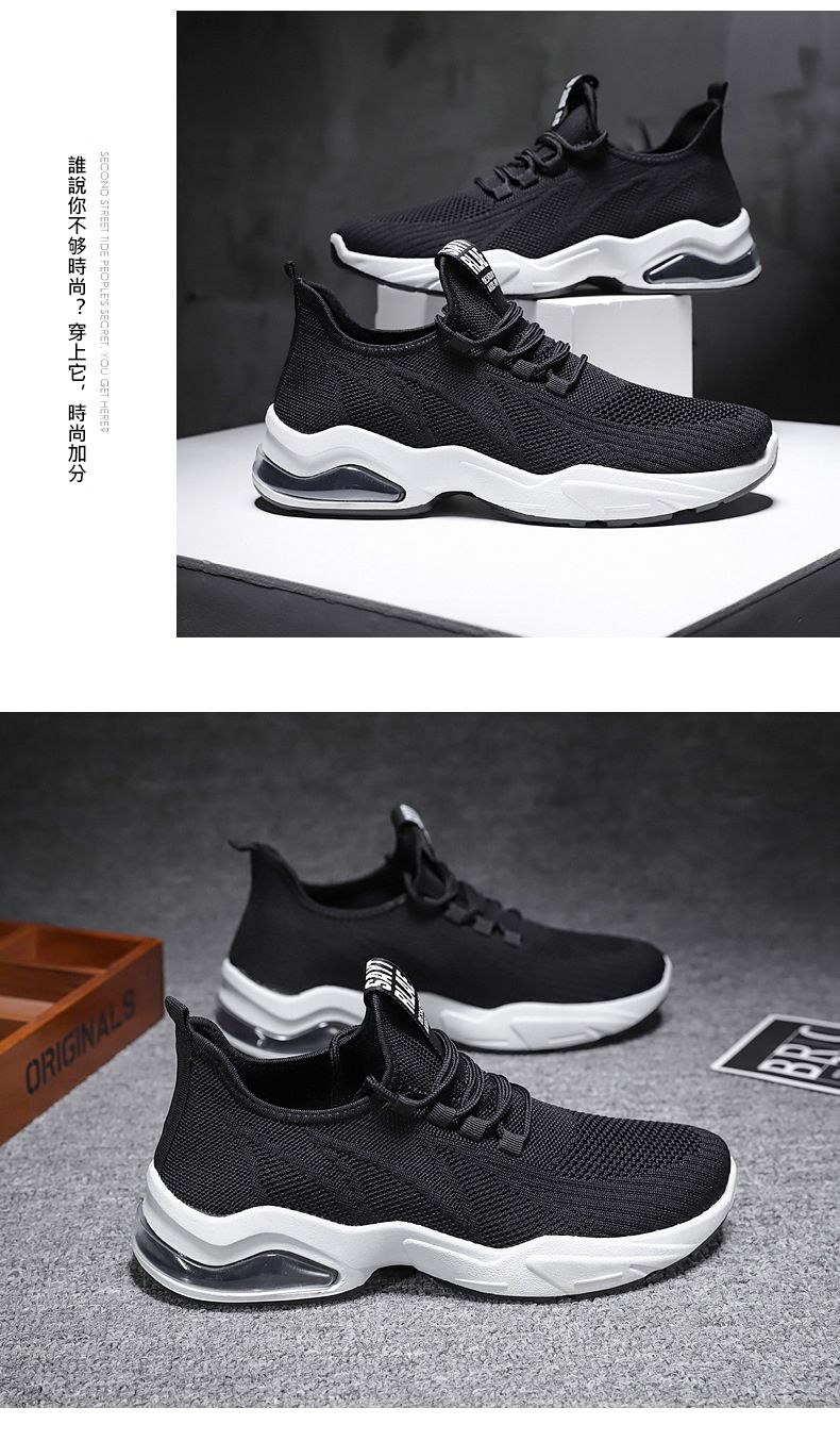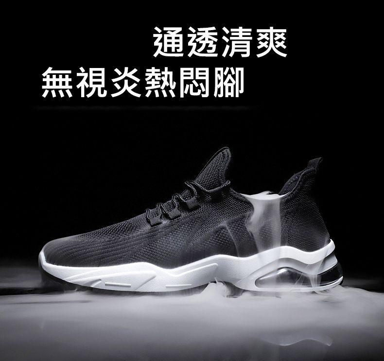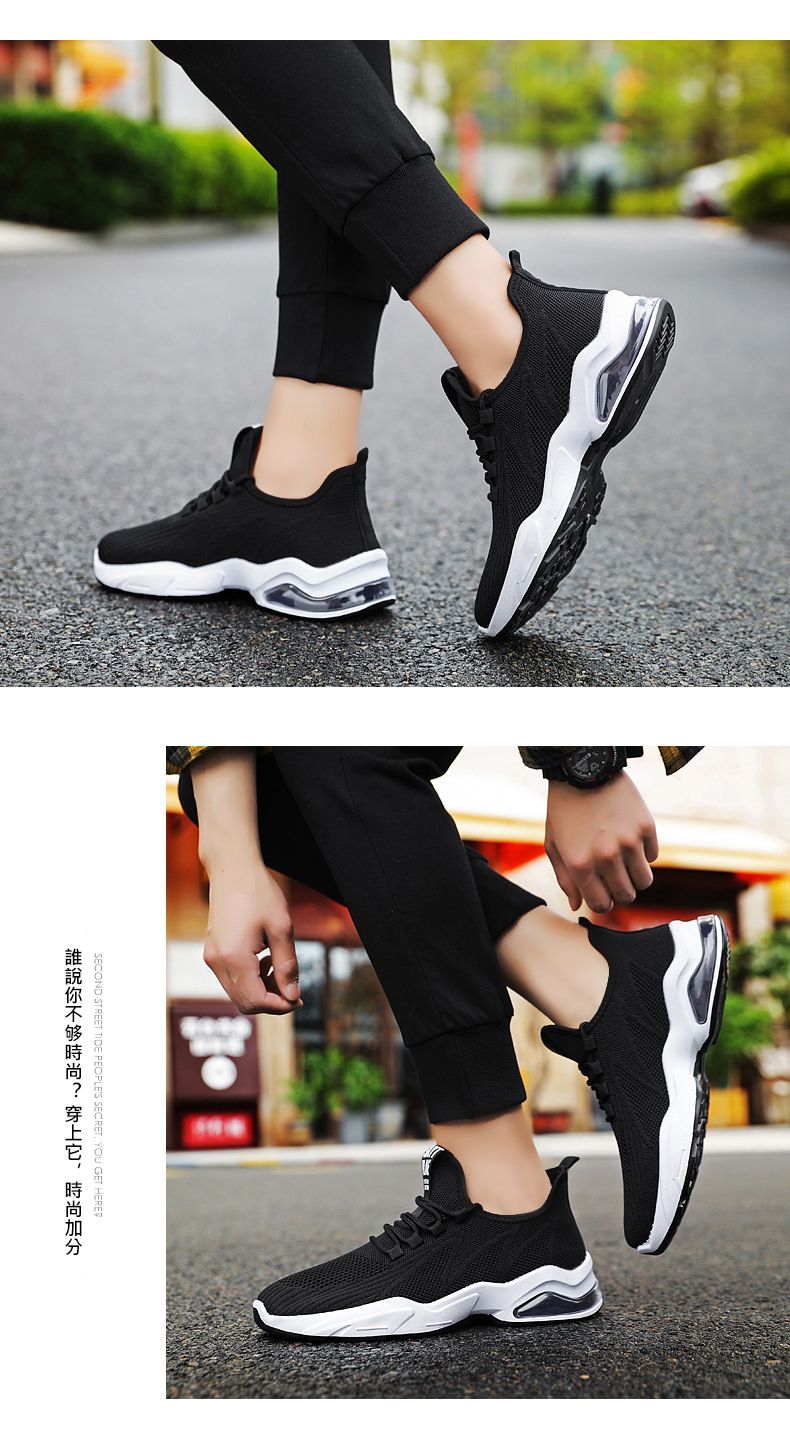 【品位之選!】男士飛織氣墊跑鞋【黑色】+【白色】各一雙(優惠400)
