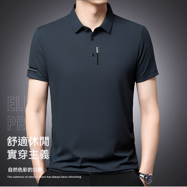 舒適休閒柔軟親膚冰絲POLO衫【買一送一】黑色+灰色各一件(到手兩件,均價每件649元)