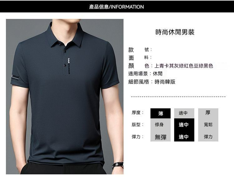 舒適休閒柔軟親膚冰絲POLO衫【買一送一】上青色+灰色各一件(到手兩件,均價每件649元)