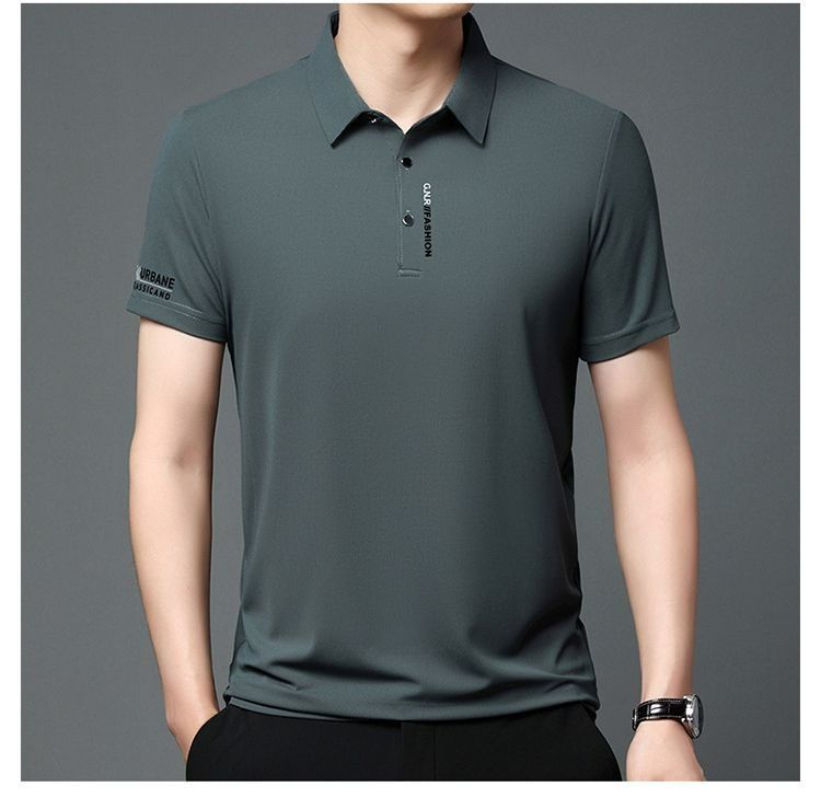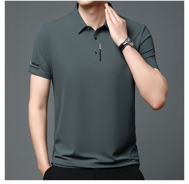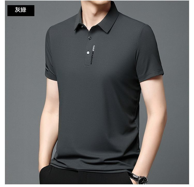 舒適休閒柔軟親膚冰絲POLO衫【買一送一】豆綠色+灰色各一件(到手兩件,均價每件649元)