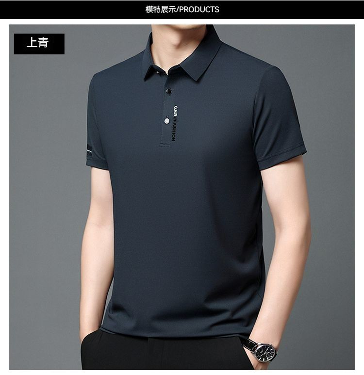 舒適休閒柔軟親膚冰絲POLO衫【買一送一】上青色+黑色各一件(到手兩件,均價每件649元)