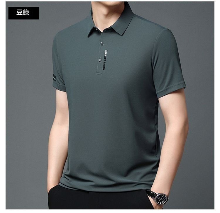 舒適休閒柔軟親膚冰絲POLO衫【買一送一】豆綠色+黑色各一件(到手兩件,均價每件649元)