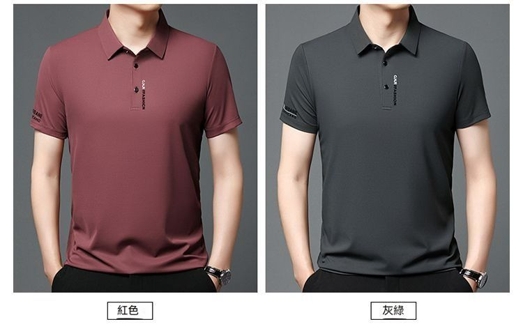 舒適休閒柔軟親膚冰絲POLO衫【買一送一】灰色+紅色各一件(到手兩件,均價每件649元)