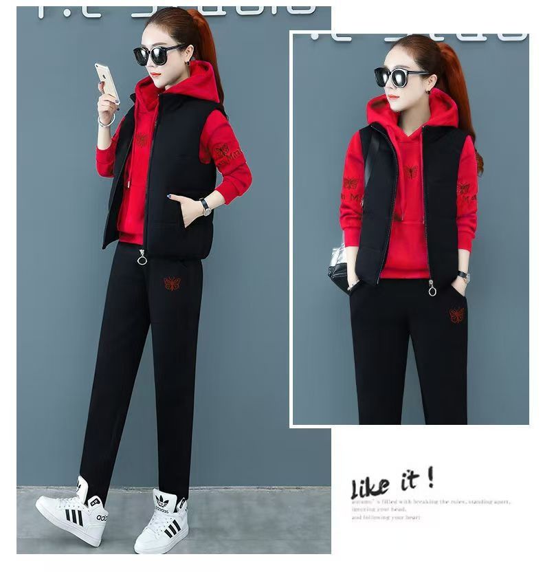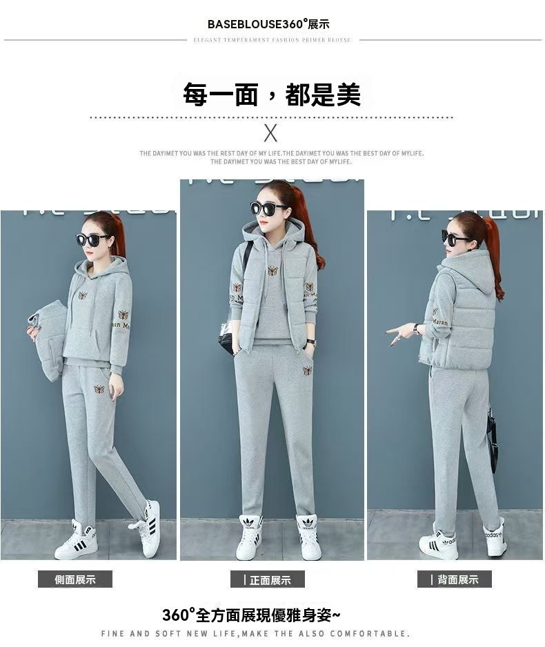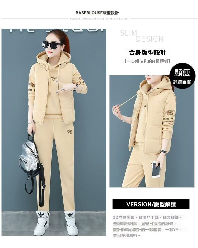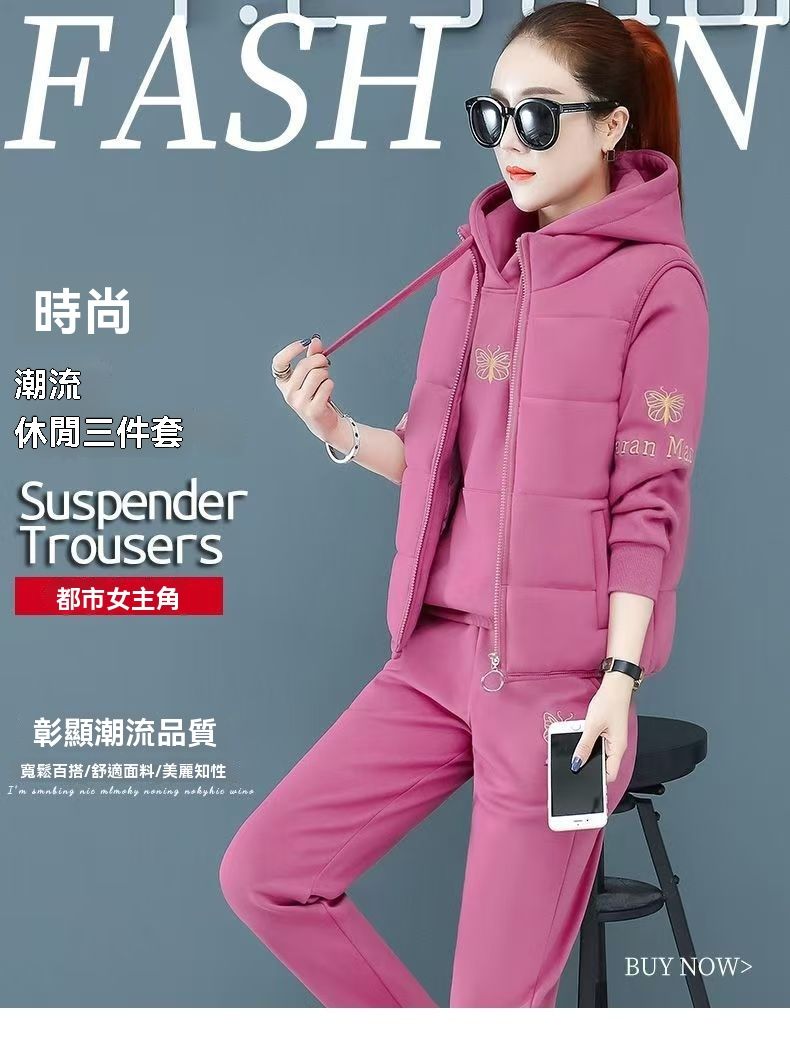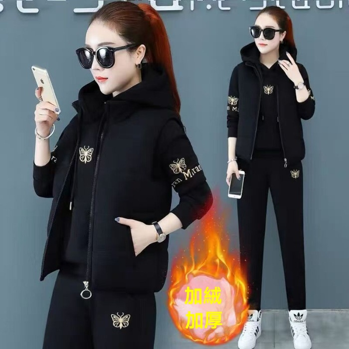 【冬天穿這三件套就夠了!限時特惠搶購中!】中老年加絨加厚運動服馬甲套裝