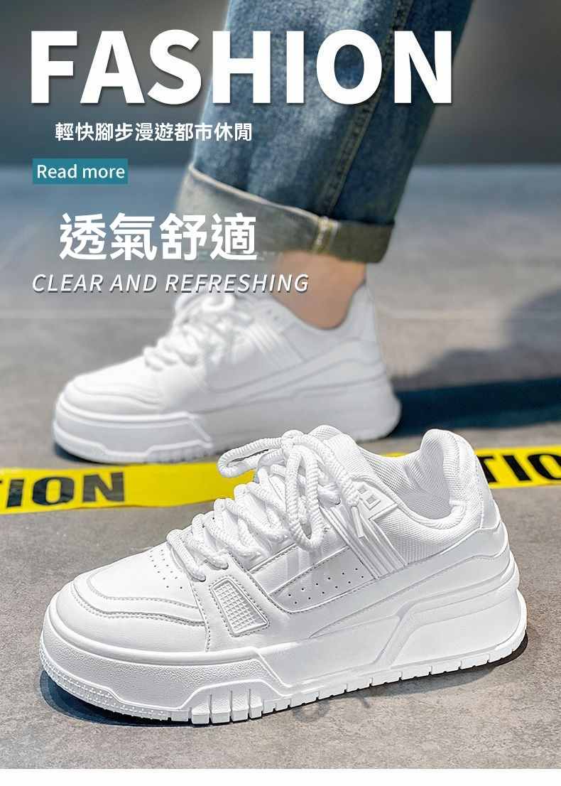 黑白經典兩色厚底增高百搭男鞋【白色】2雙(到手2雙,每雙均價549元!)