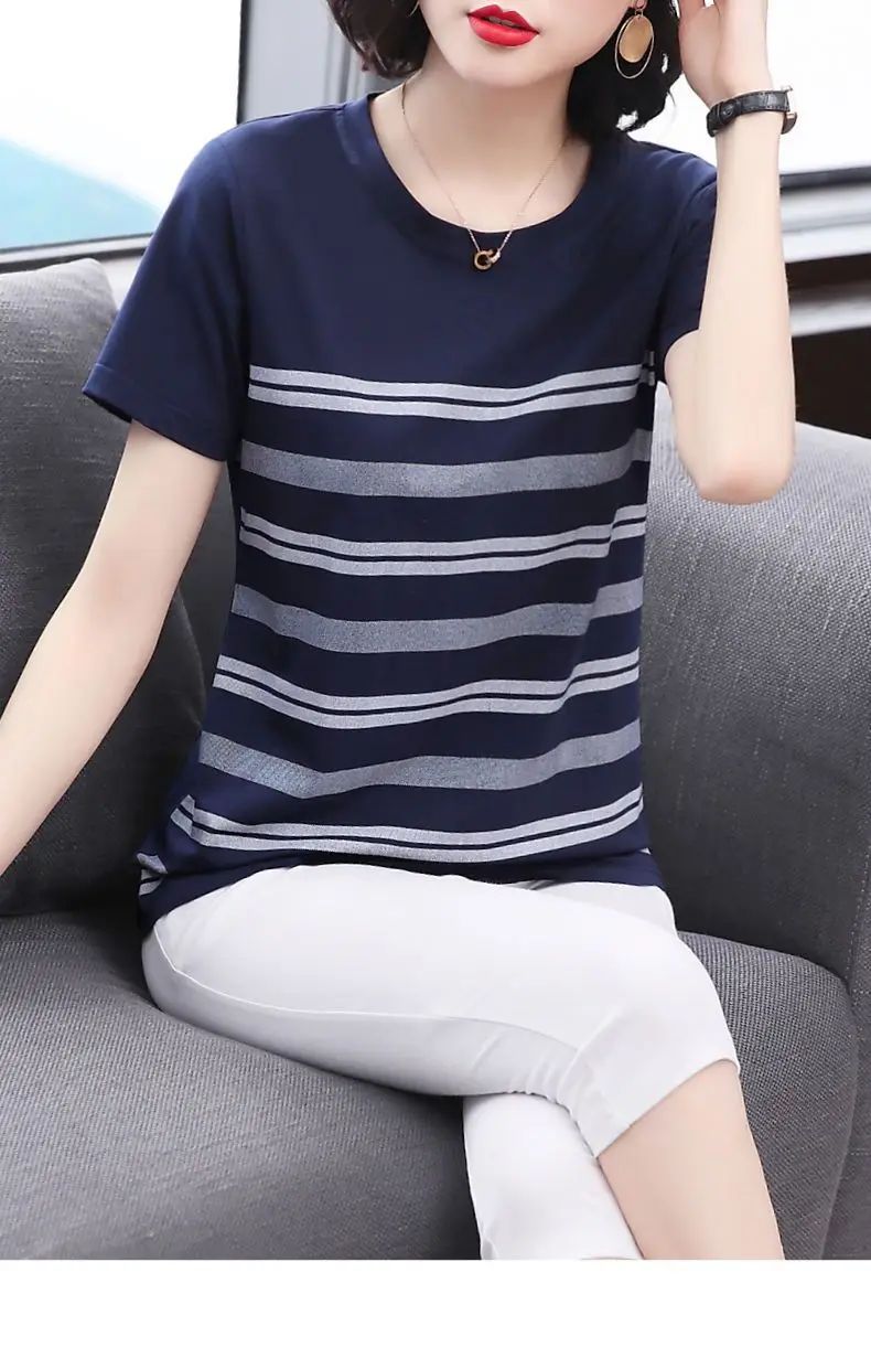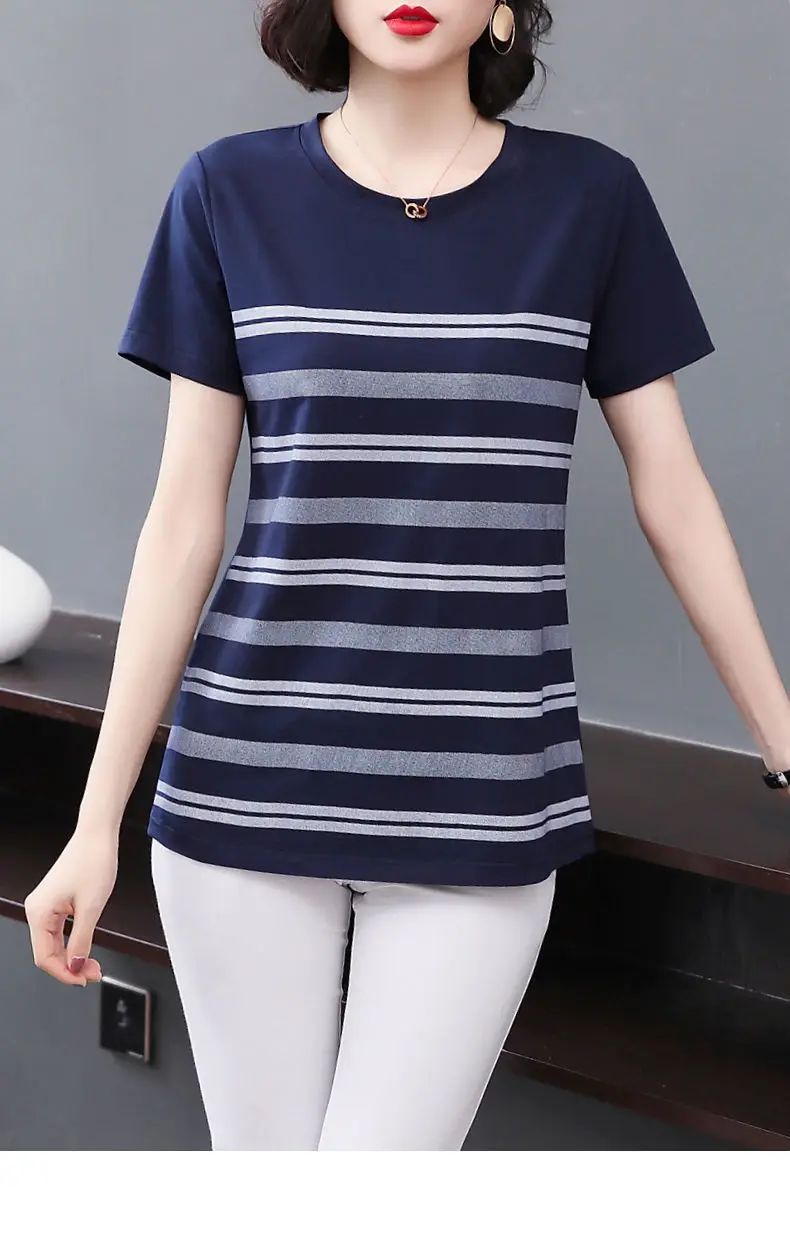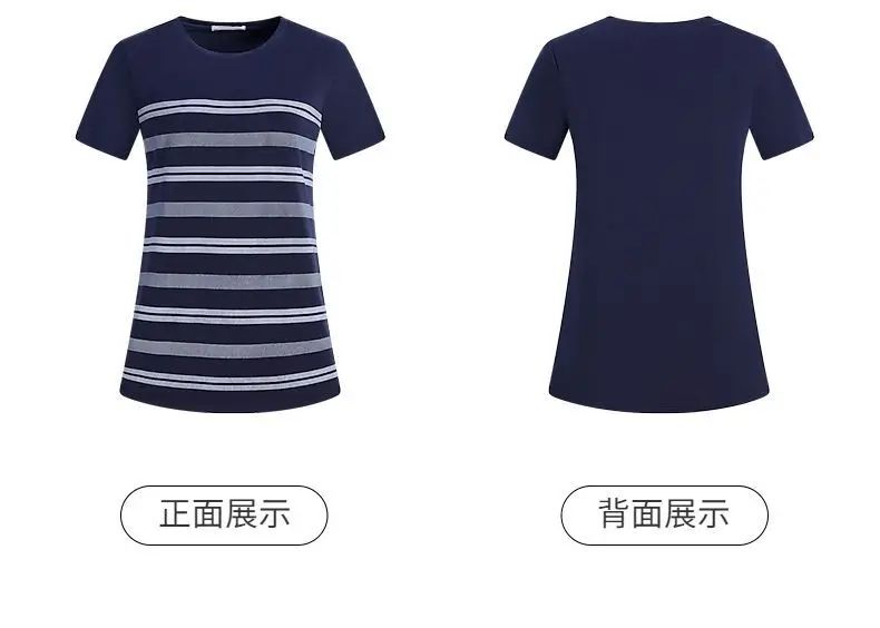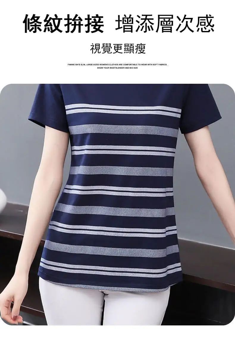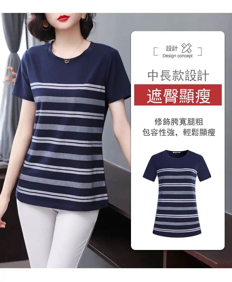 中年媽媽中長款條紋上衣【買一送一】【黑色】+【藍色】各一件(每件499元)