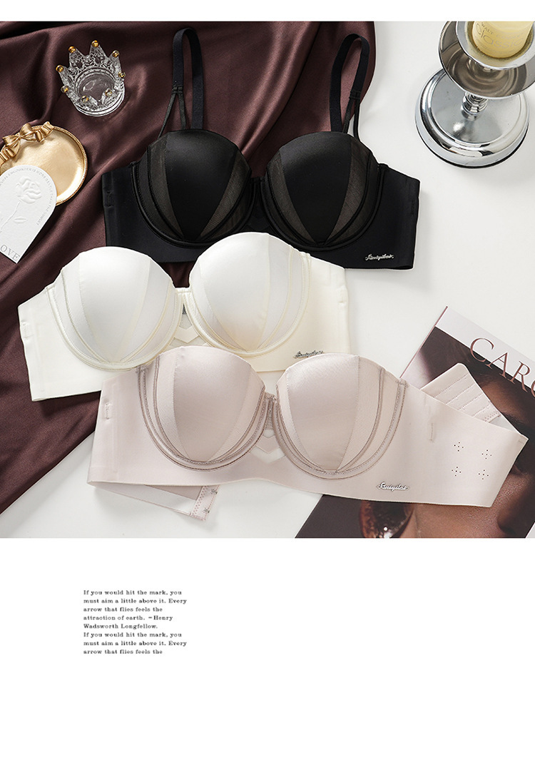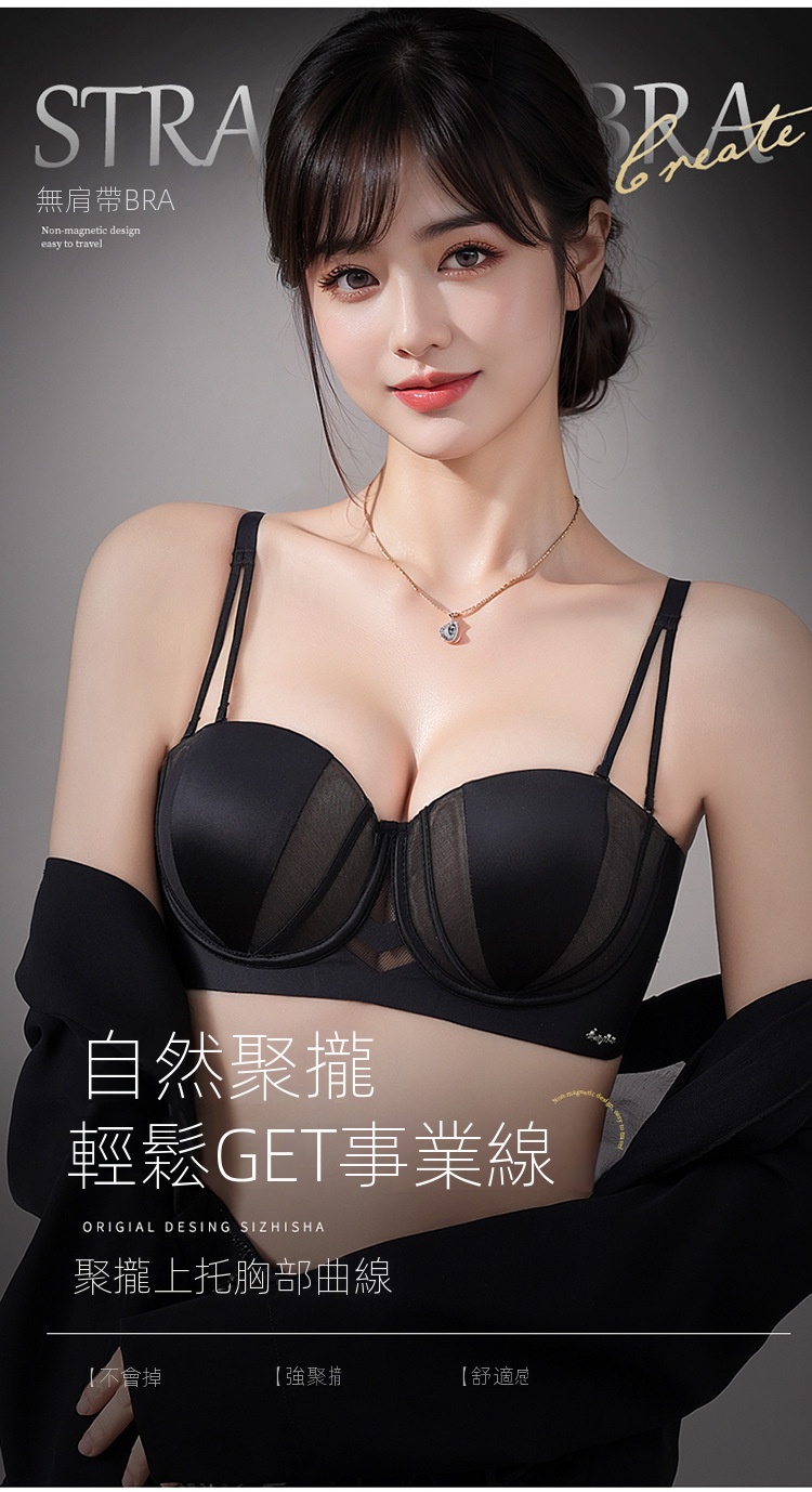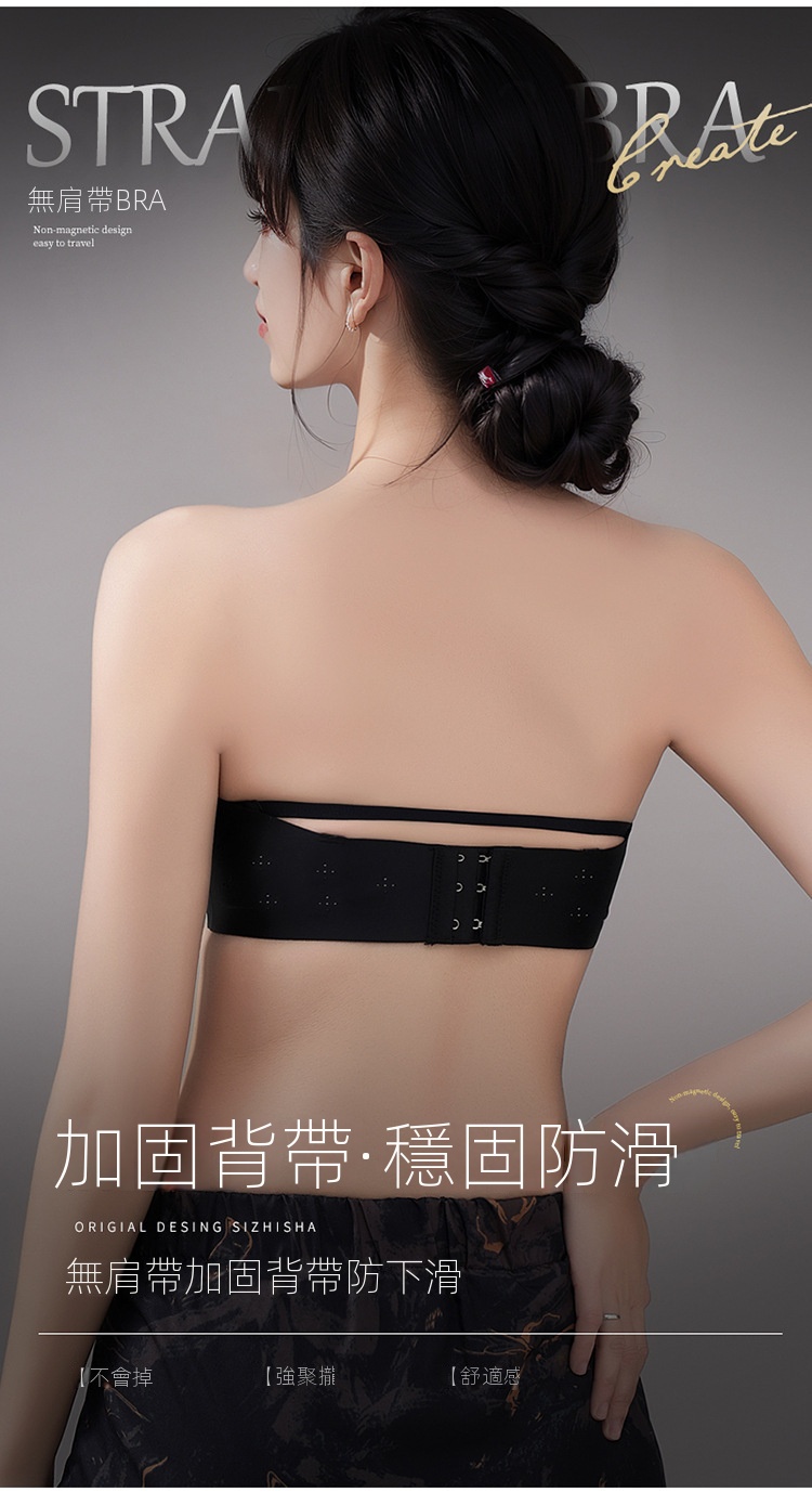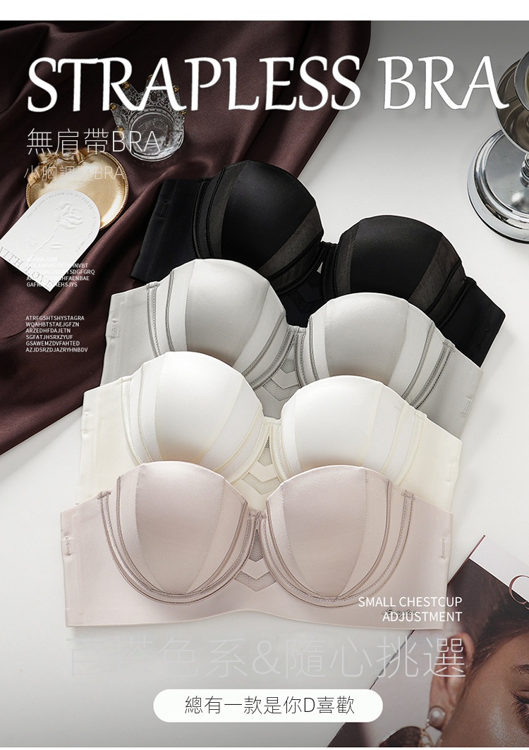 夏季抹胸可拆卸提拉無痕半杯無肩帶內衣【買一送一】黑色+香檳色各一件(到手兩件,每件均價649元!)