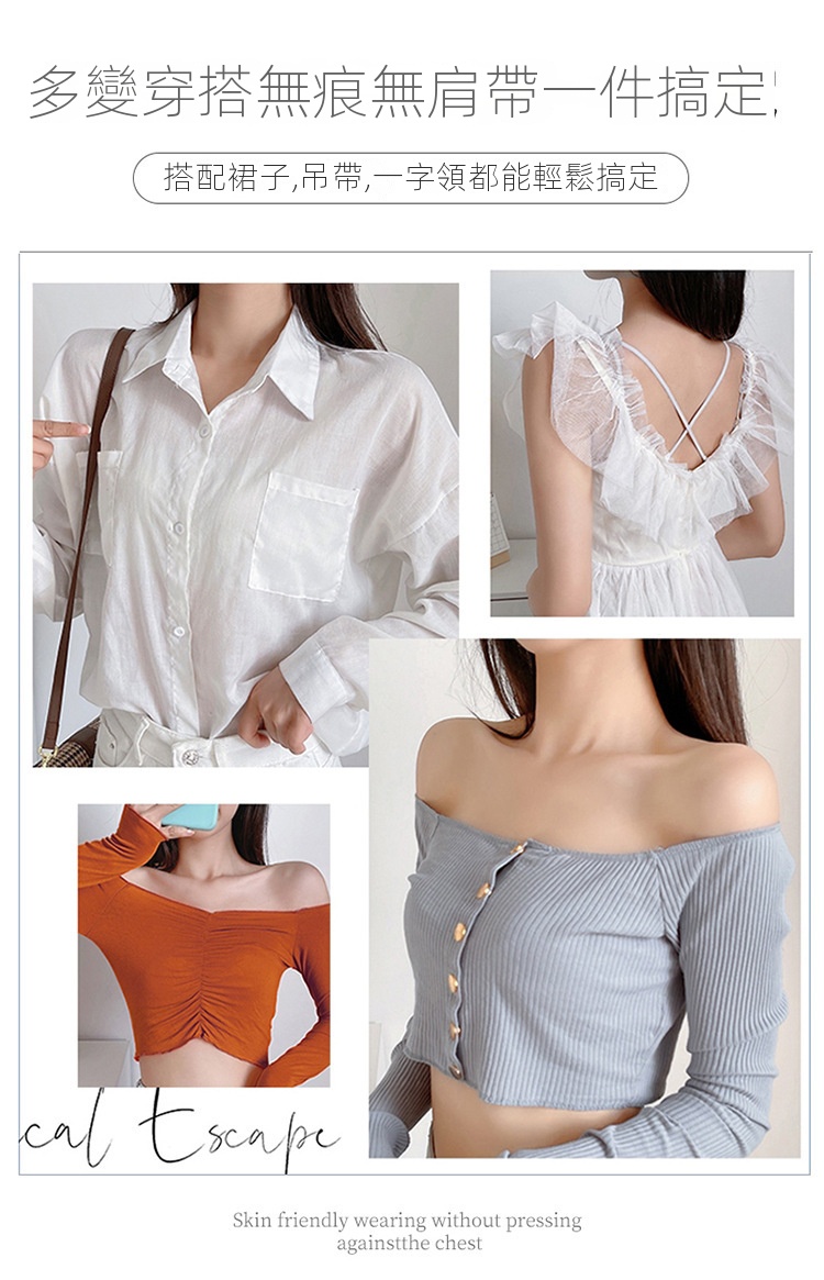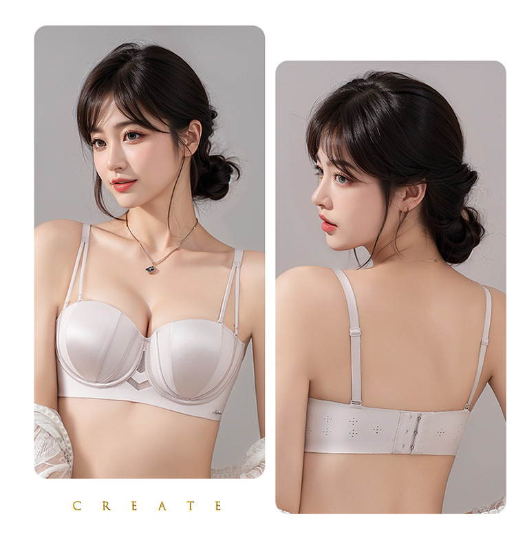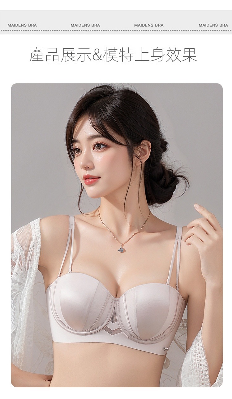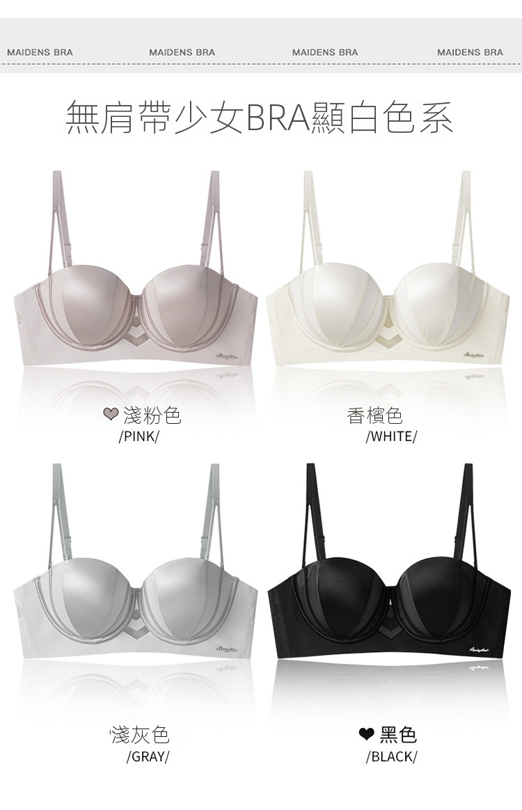 夏季抹胸可拆卸提拉無痕半杯無肩帶內衣【買一送一】香檳色+淺灰色各一件(到手兩件,每件均價649元!)