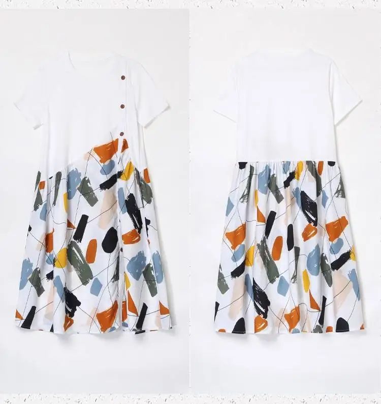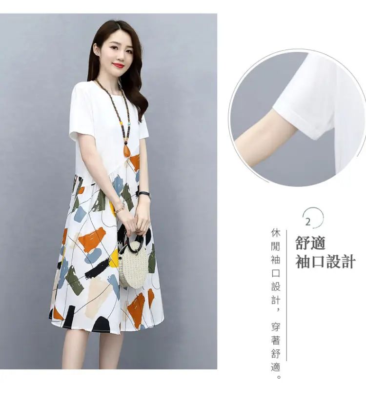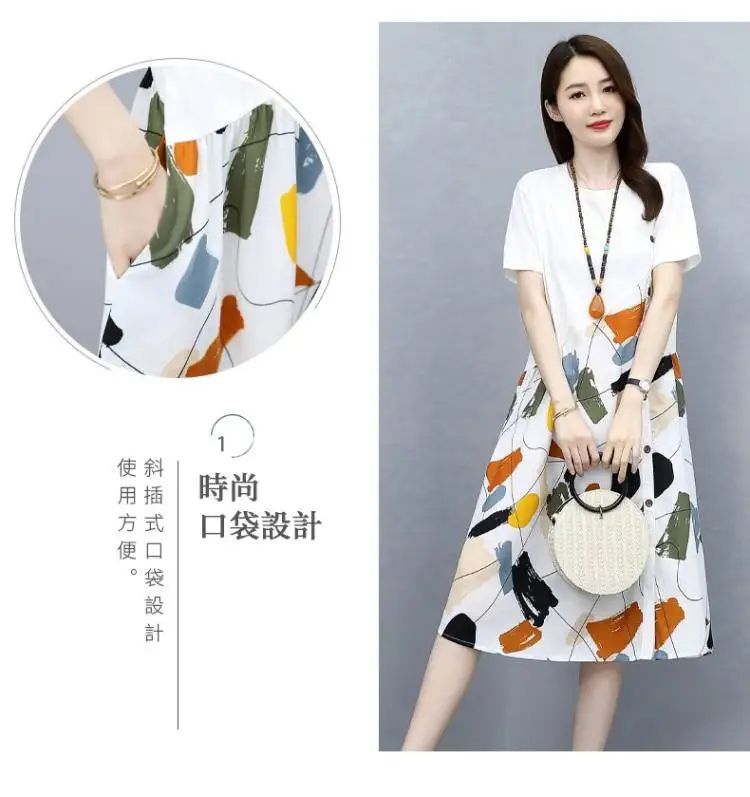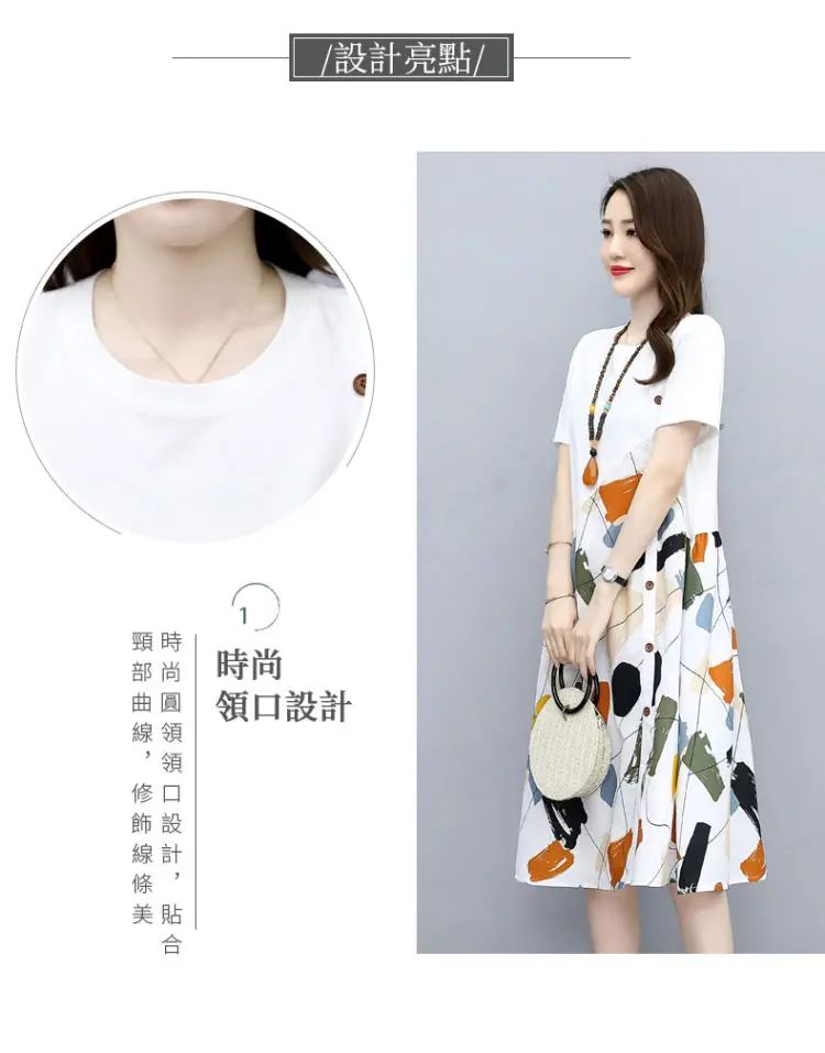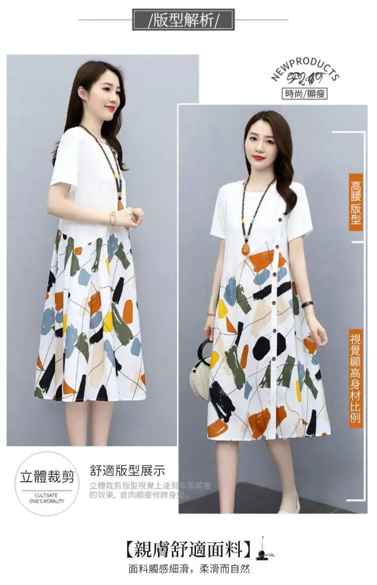 冰涼清爽拼接印花爆款連衣裙【買一送一】白色+黑色各一件(到手兩件,每件均價549元)
