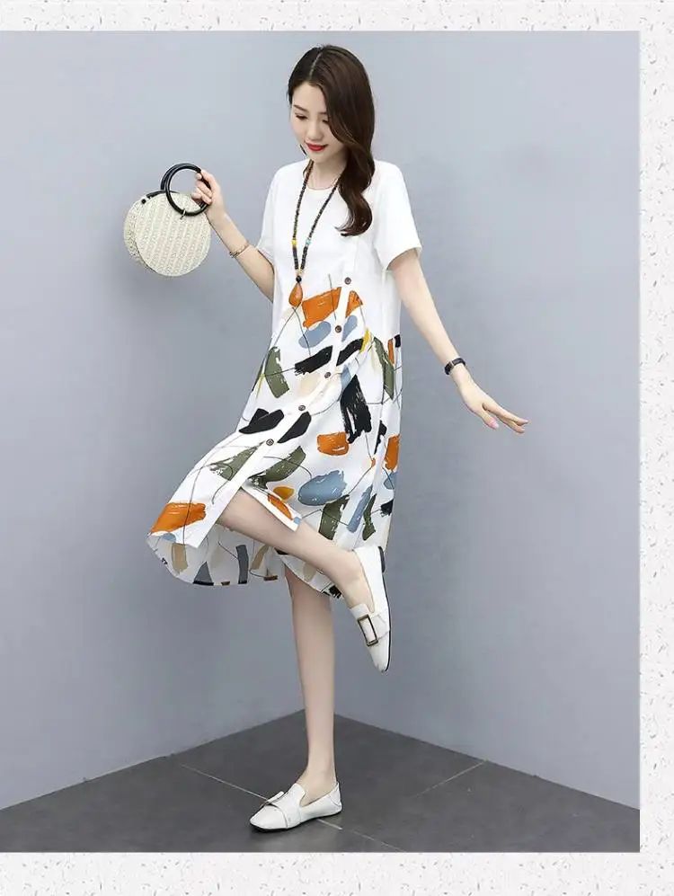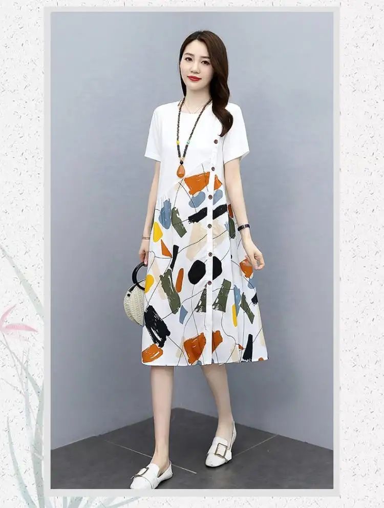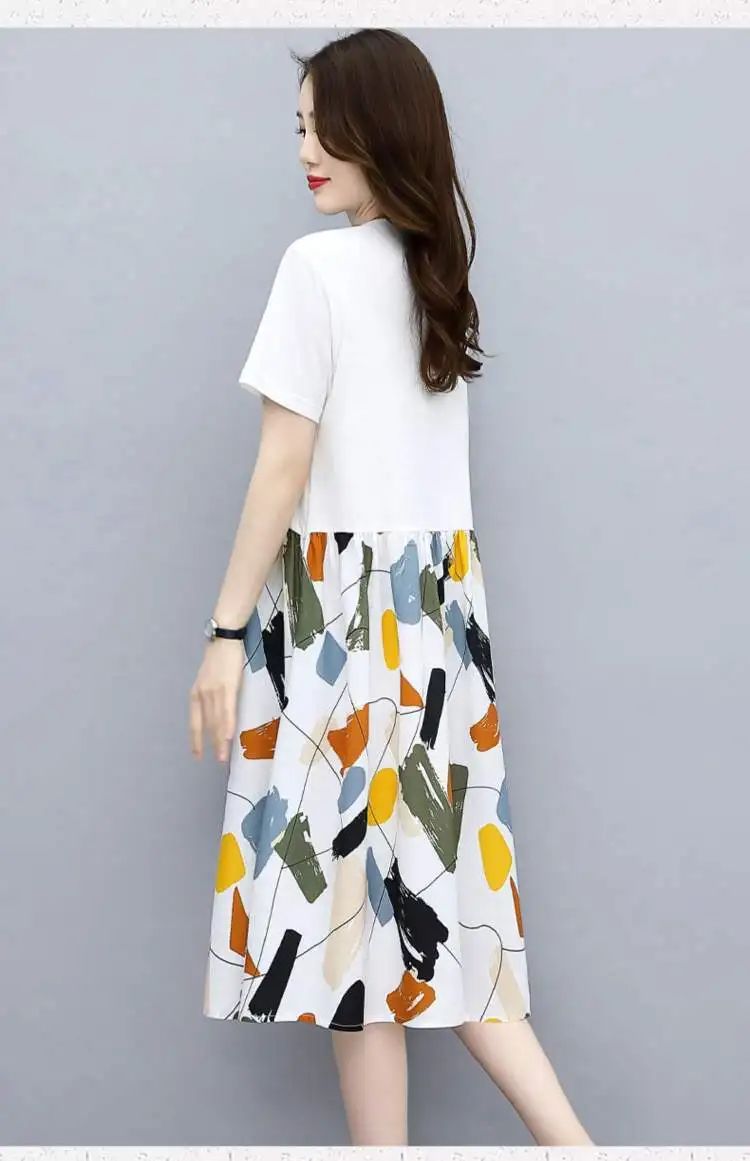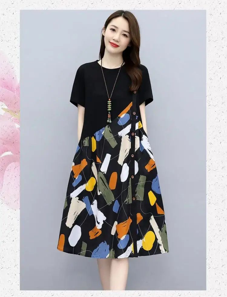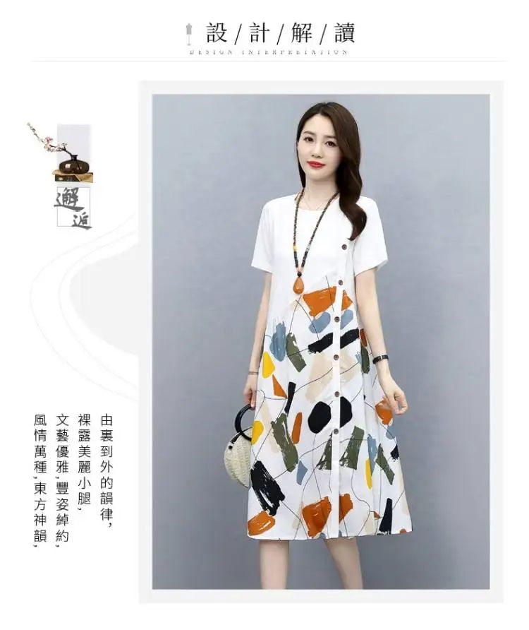 冰涼清爽拼接印花爆款連衣裙【買一送一】白色+黑色各一件(到手兩件,每件均價549元)