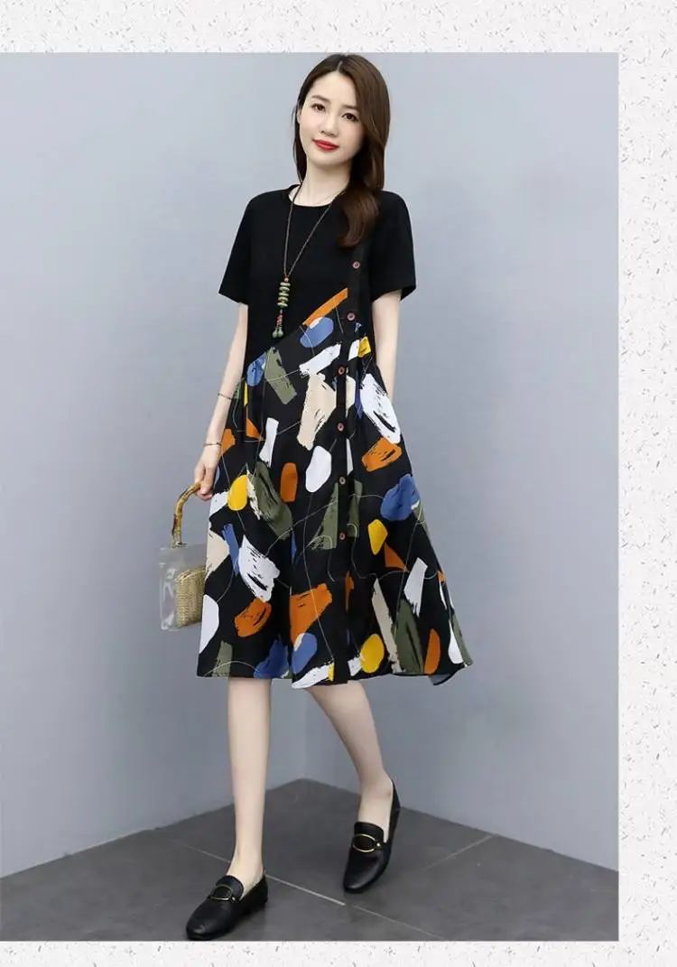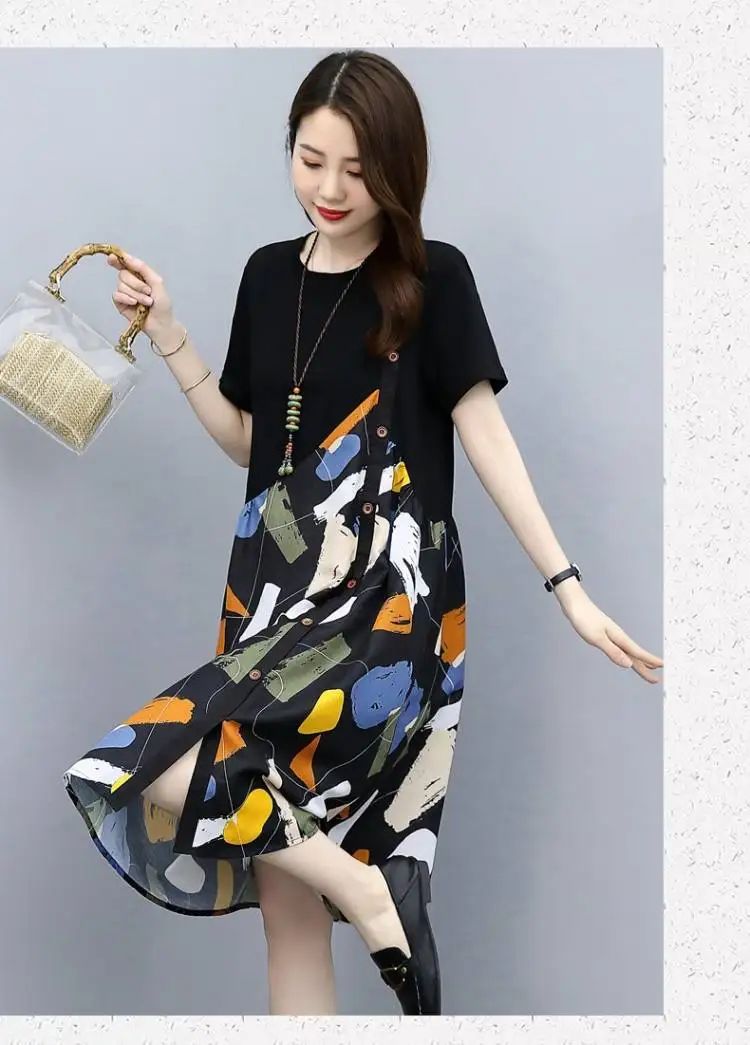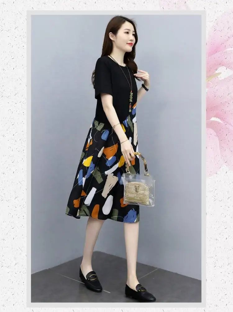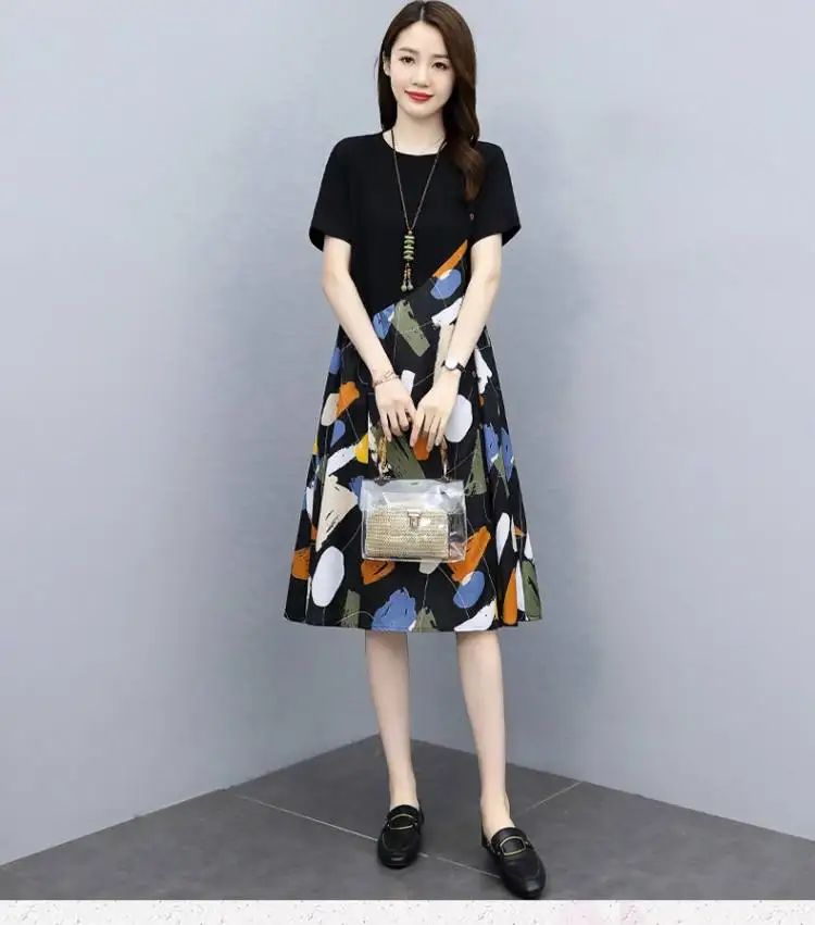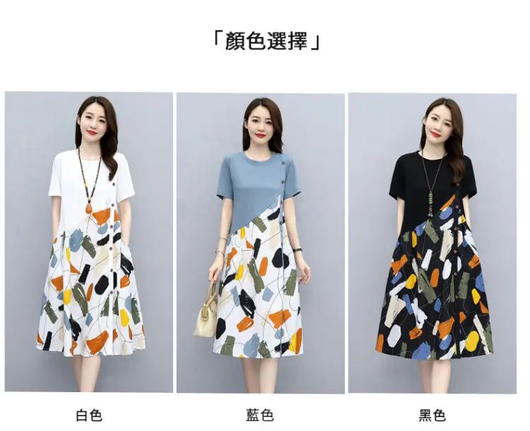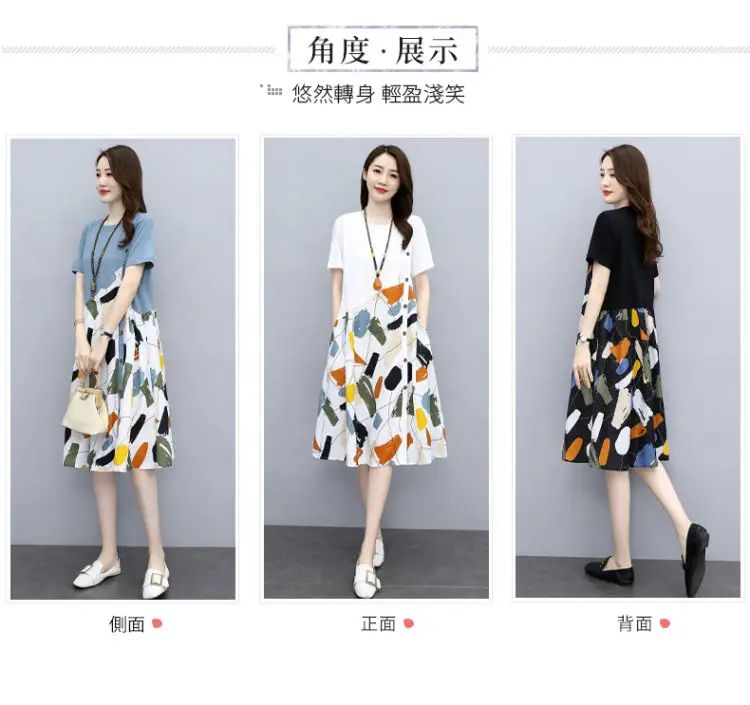 冰涼清爽拼接印花爆款連衣裙【加200秒殺3件!】白色+黑色+藍色各一件(到手3件,每件均價432元)