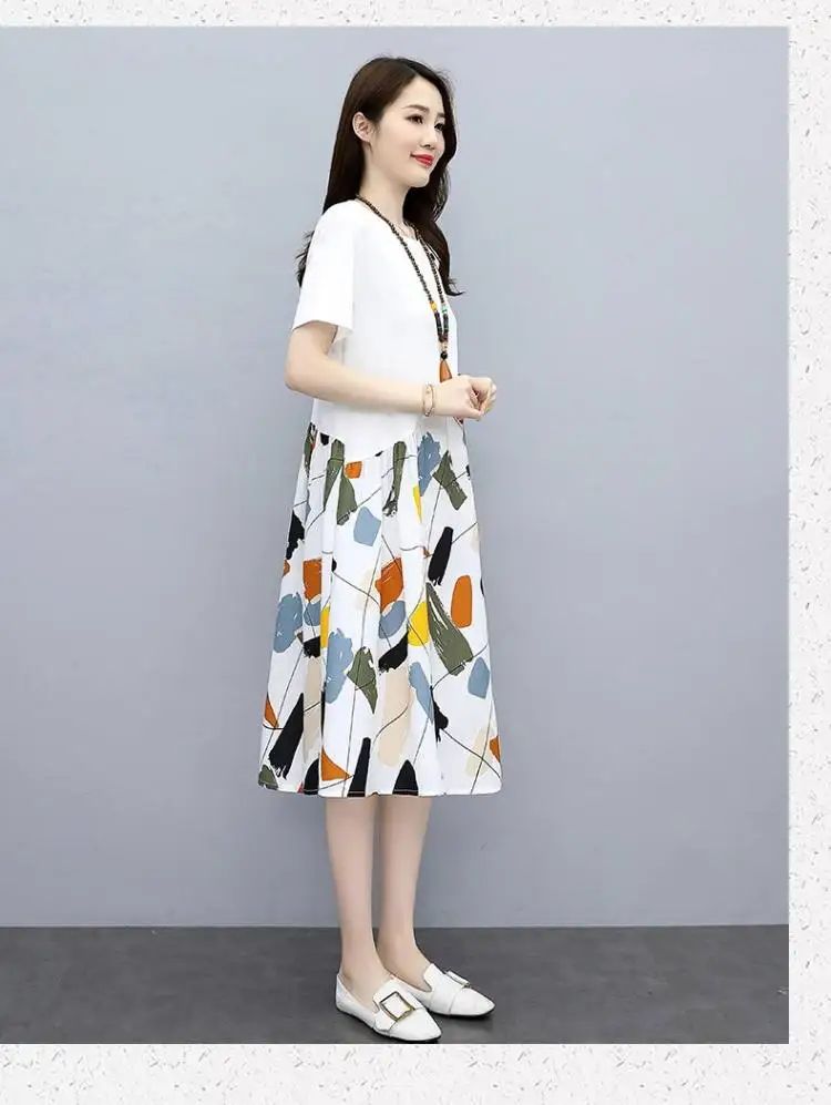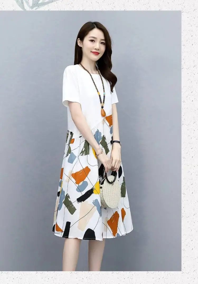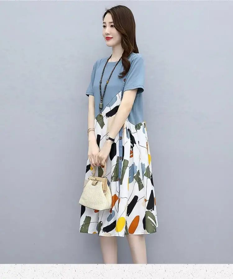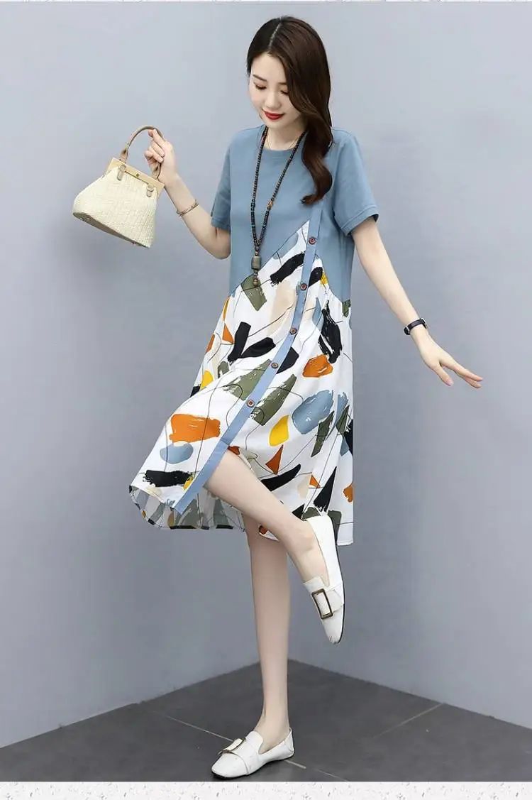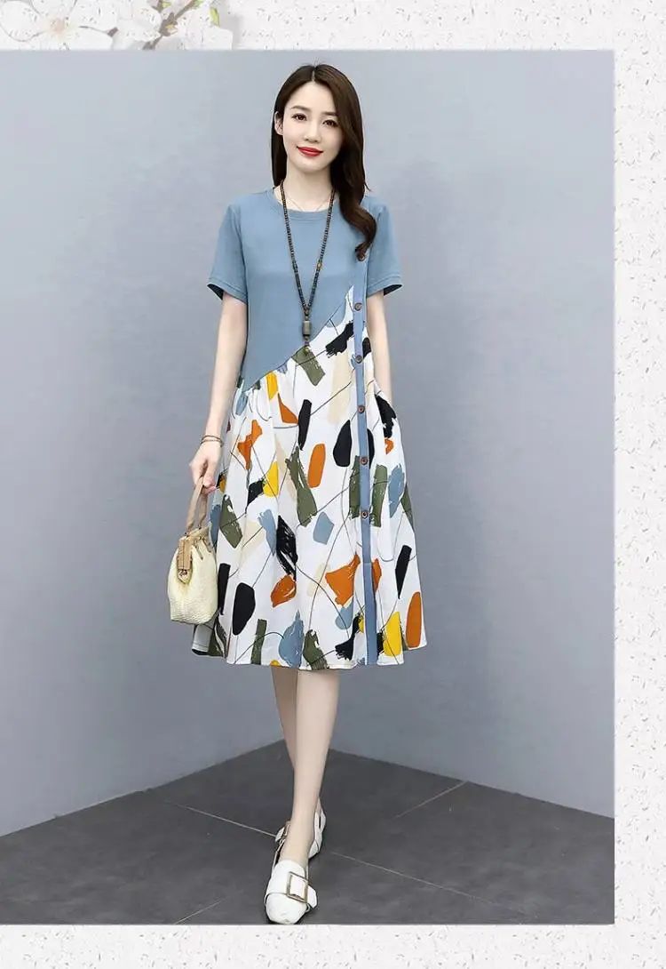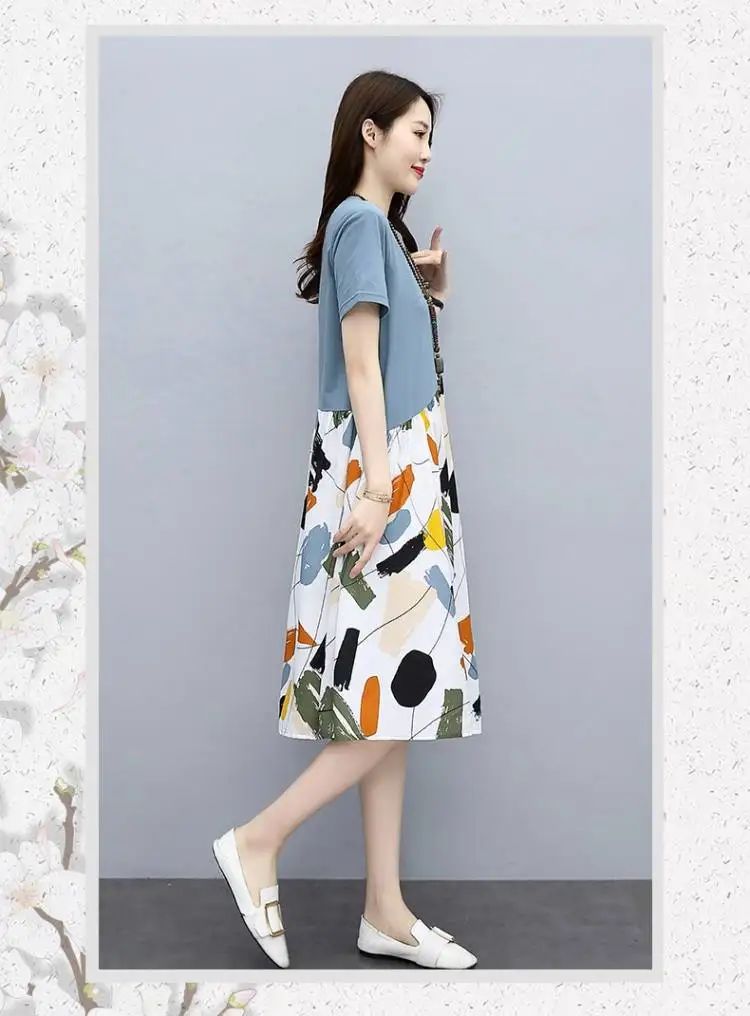 冰涼清爽拼接印花爆款連衣裙【買一送一】白色+藍色各一件(到手兩件,每件均價549元)